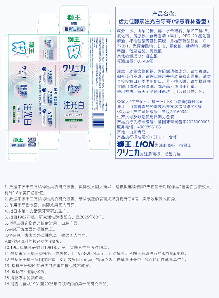 狮王齿力佳酵素注光白牙膏(绿意森林)120g
