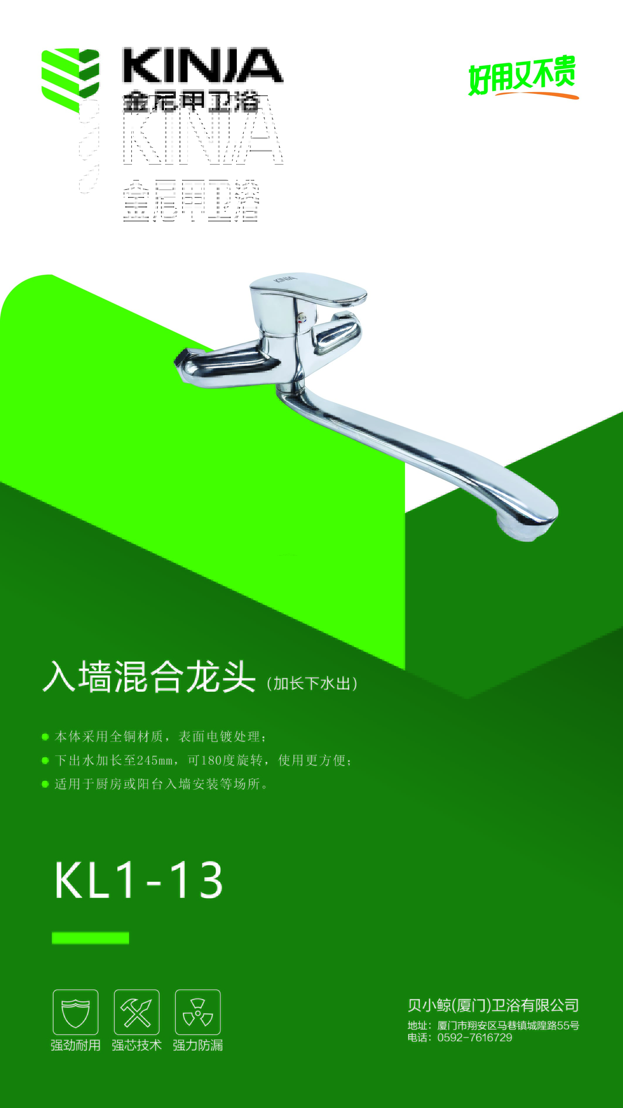 龙头/KL1-13/入墙混合/全铜镀铬/单把/加长下出水