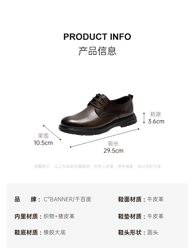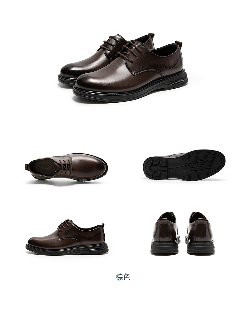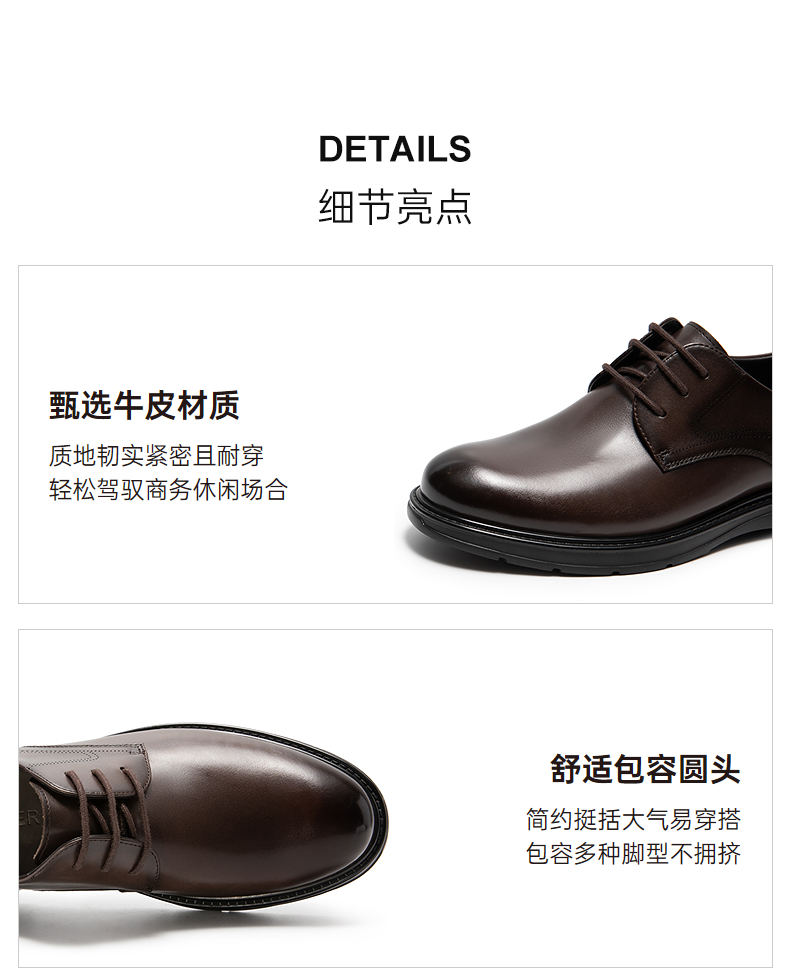 千百度男鞋英伦风真皮休闲皮鞋黑色男士商务正装皮鞋A25177261
