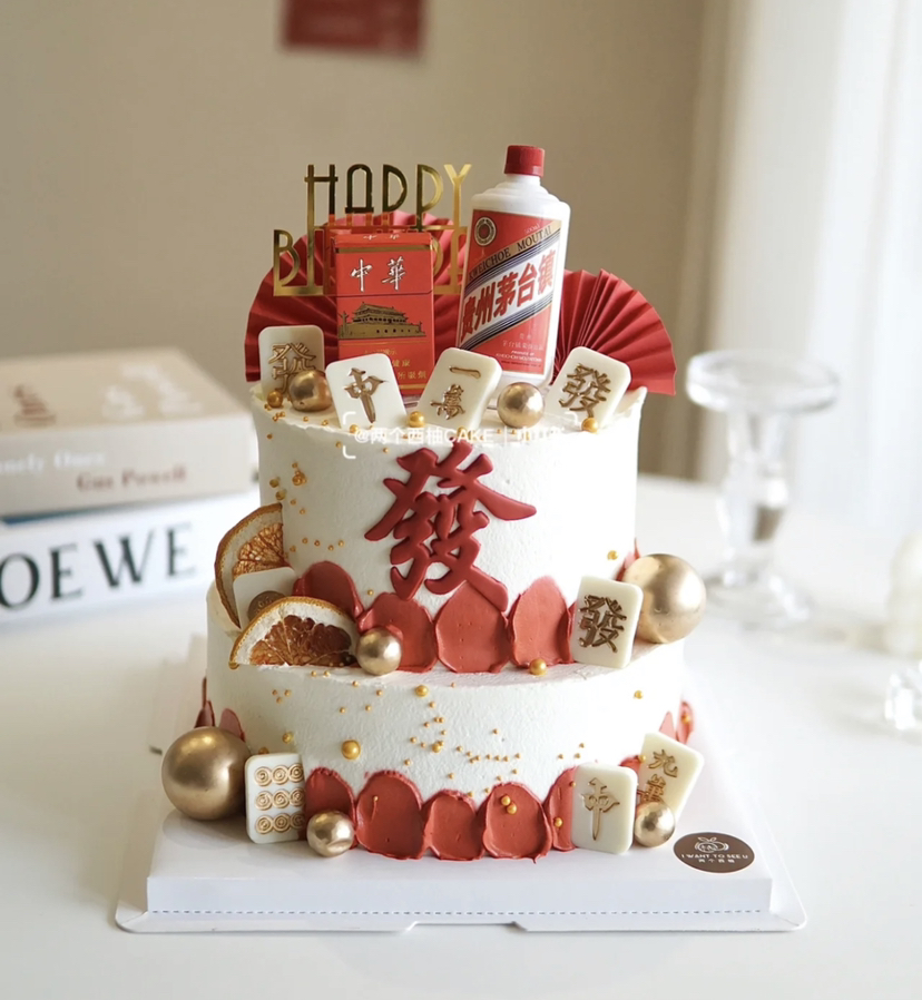 长辈领导男士茅台中华麻将蛋糕 商品图0