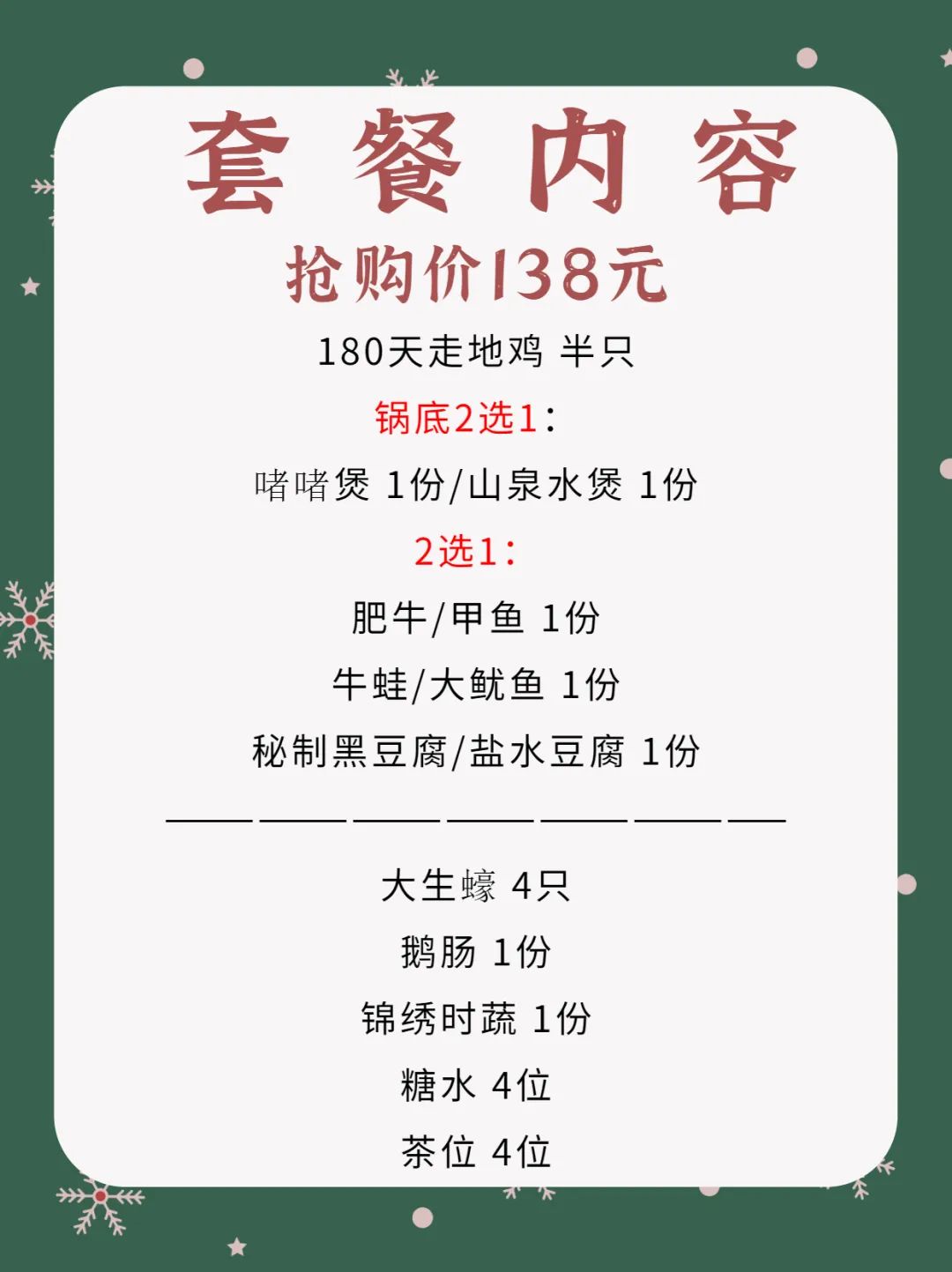 4人套餐抢购价:138元