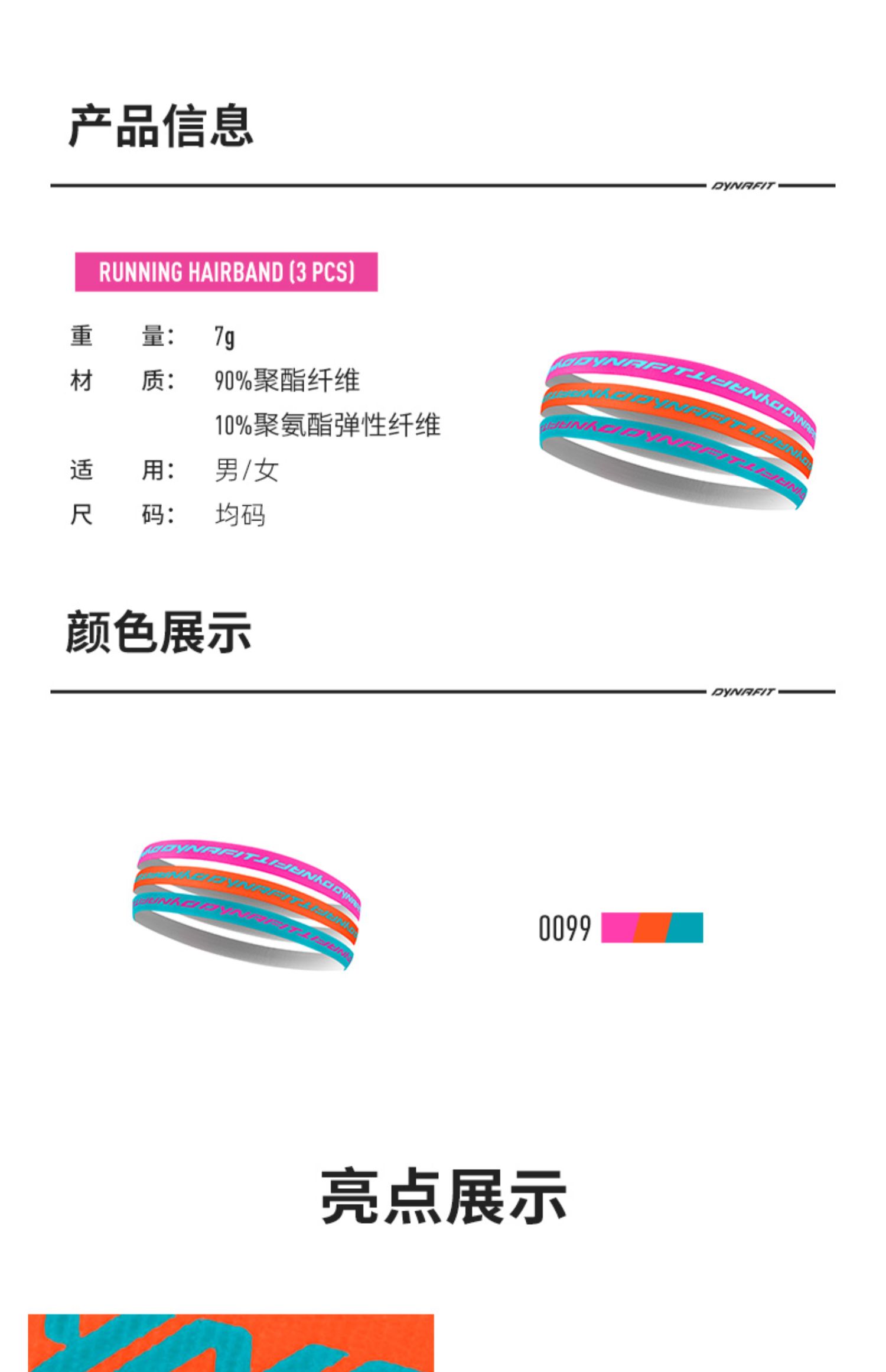 DYNAFIT头带 08-0000070845 RUNNING HAIRBAND (3 PCS)