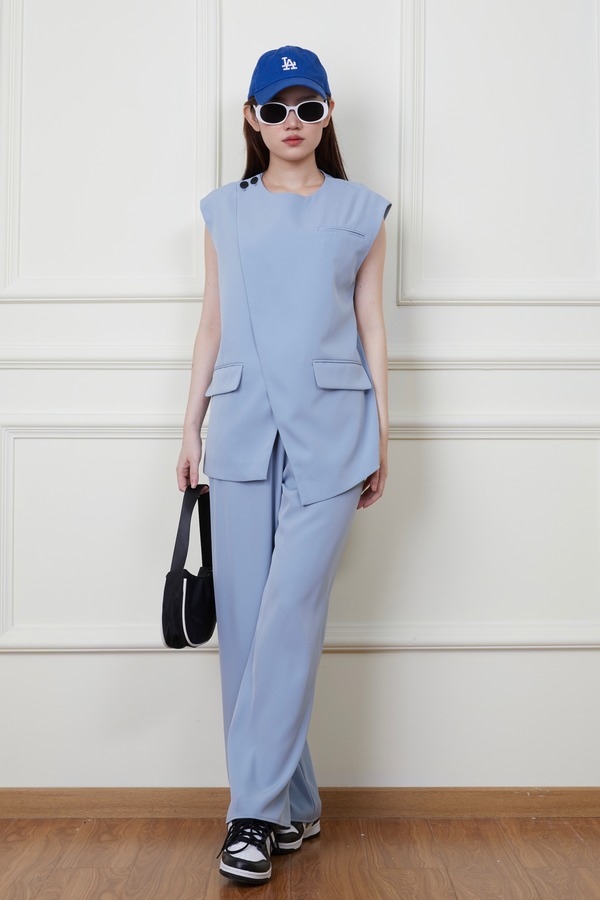 Kai & Kiera 极简不对称西装马甲长裤套装 18697