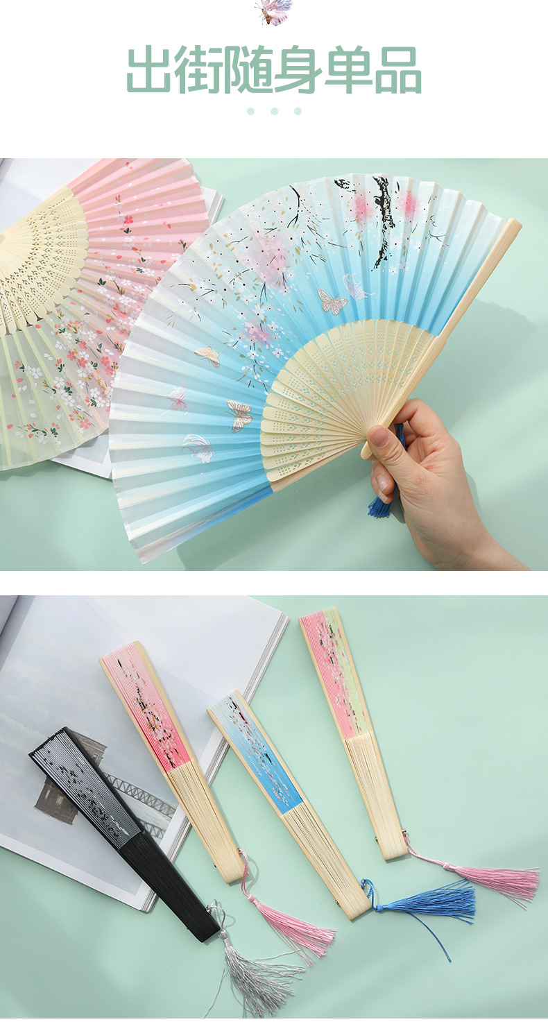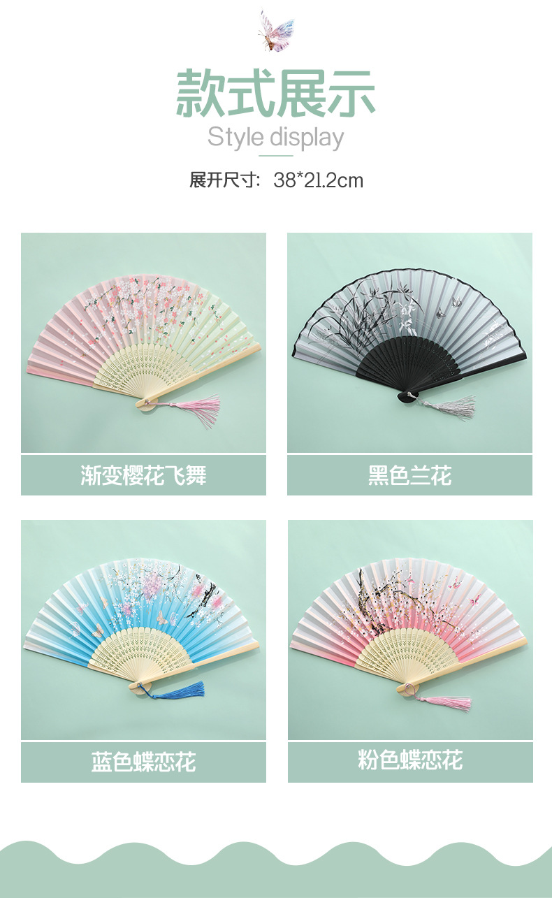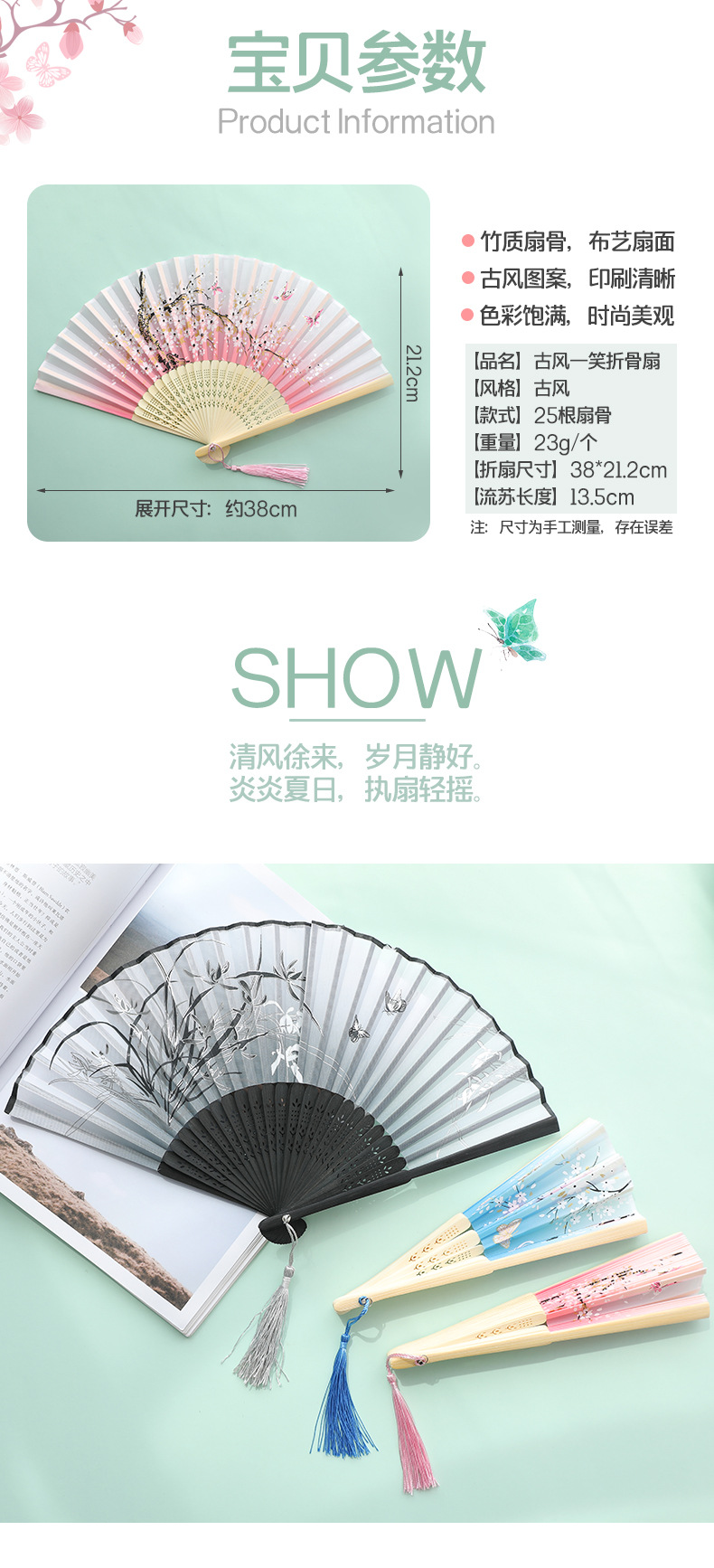 中国古风折扇女式流苏夏季随身时尚饰品 折叠古典汉服小巧扇