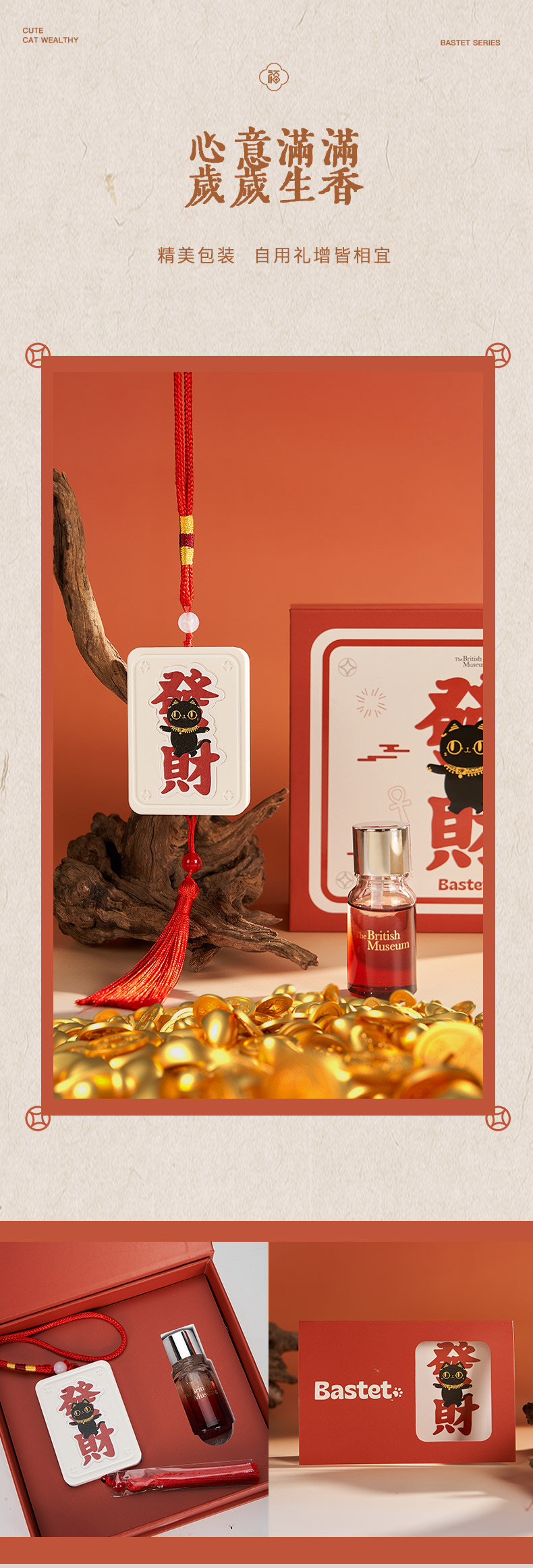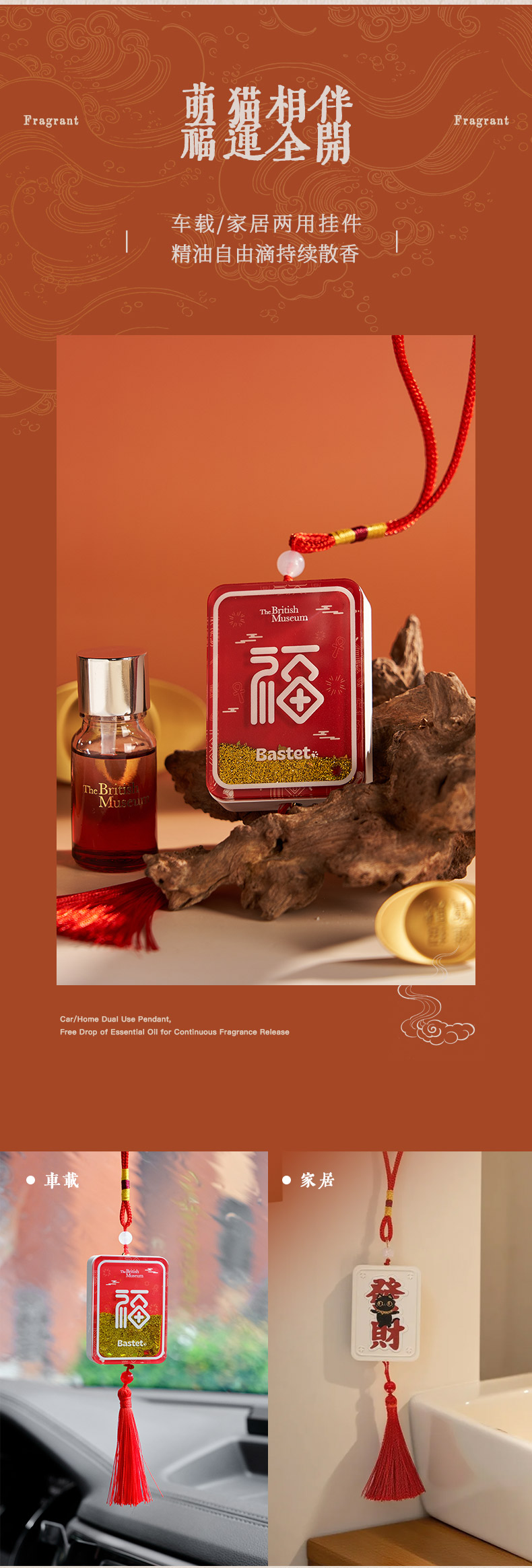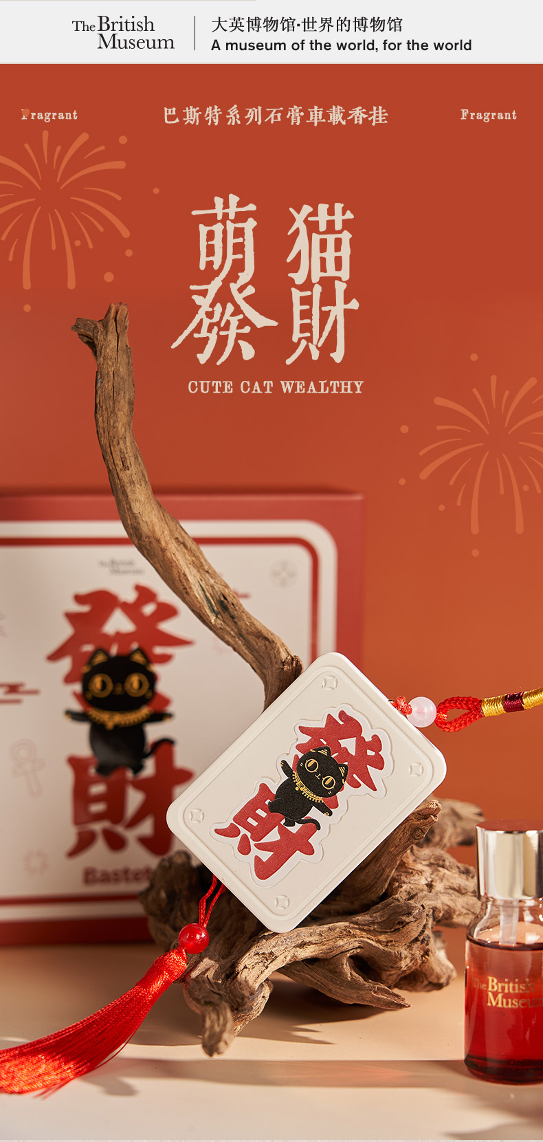 大英博物馆巴斯特系列萌猫发财石膏车载香挂