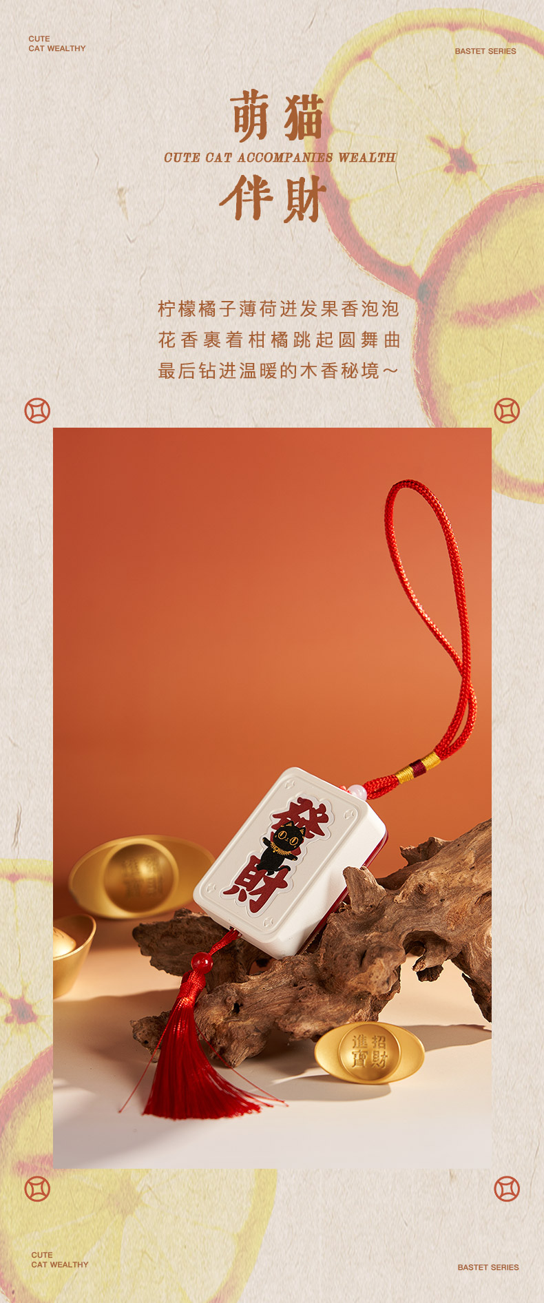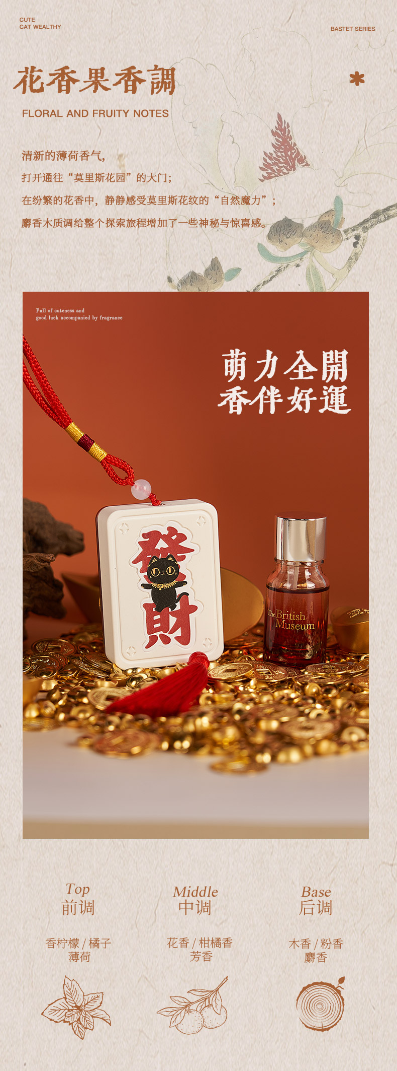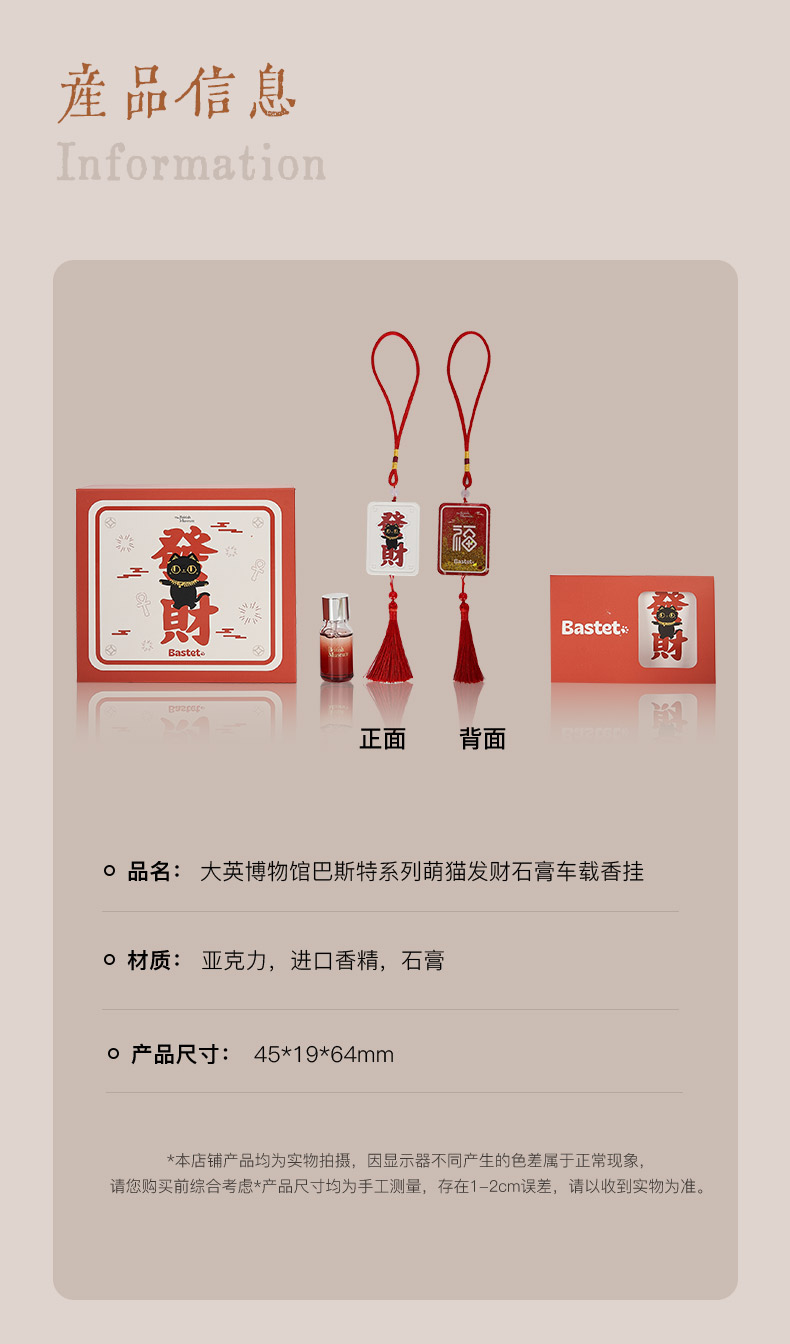 大英博物馆巴斯特系列萌猫发财石膏车载香挂