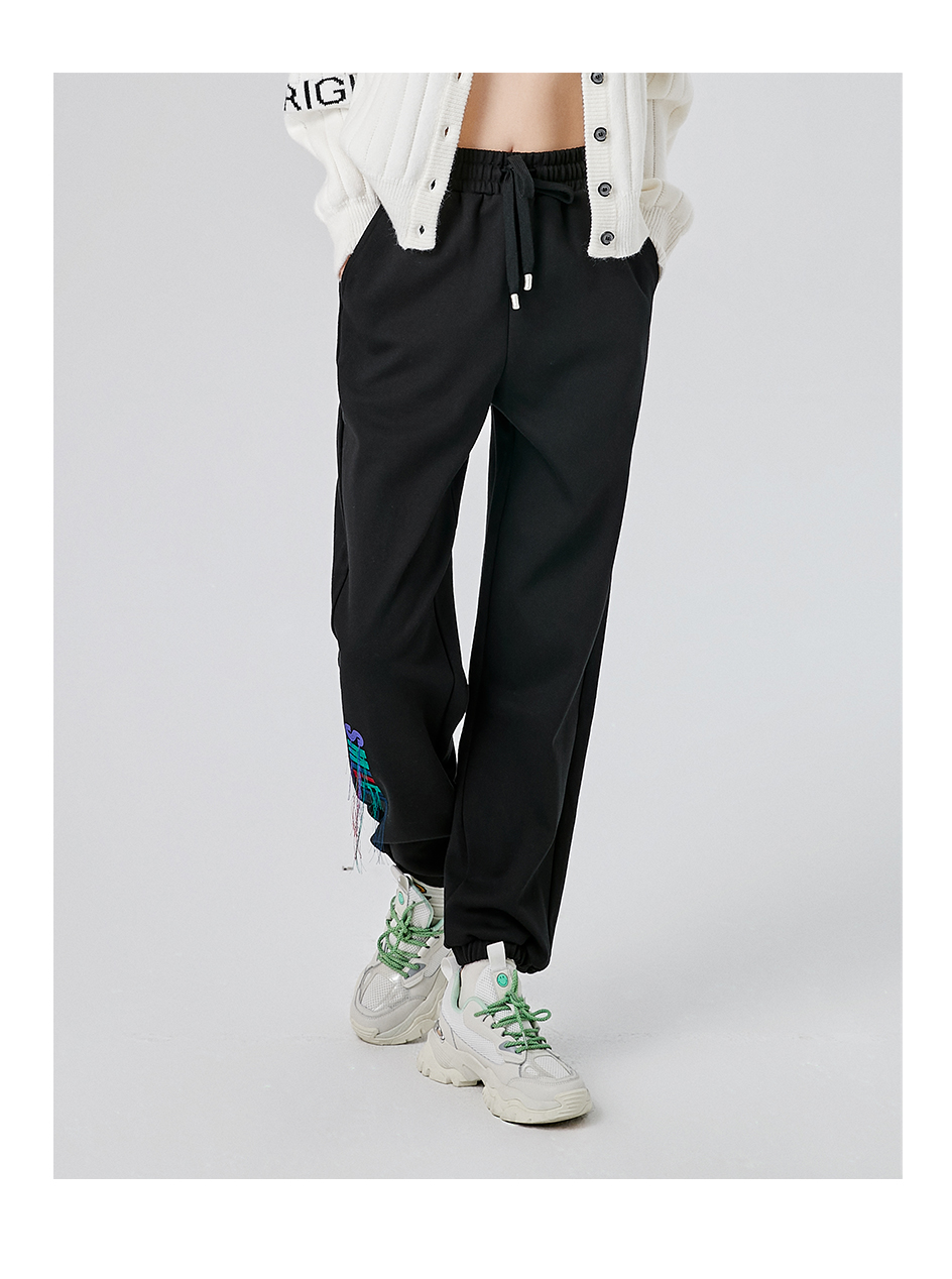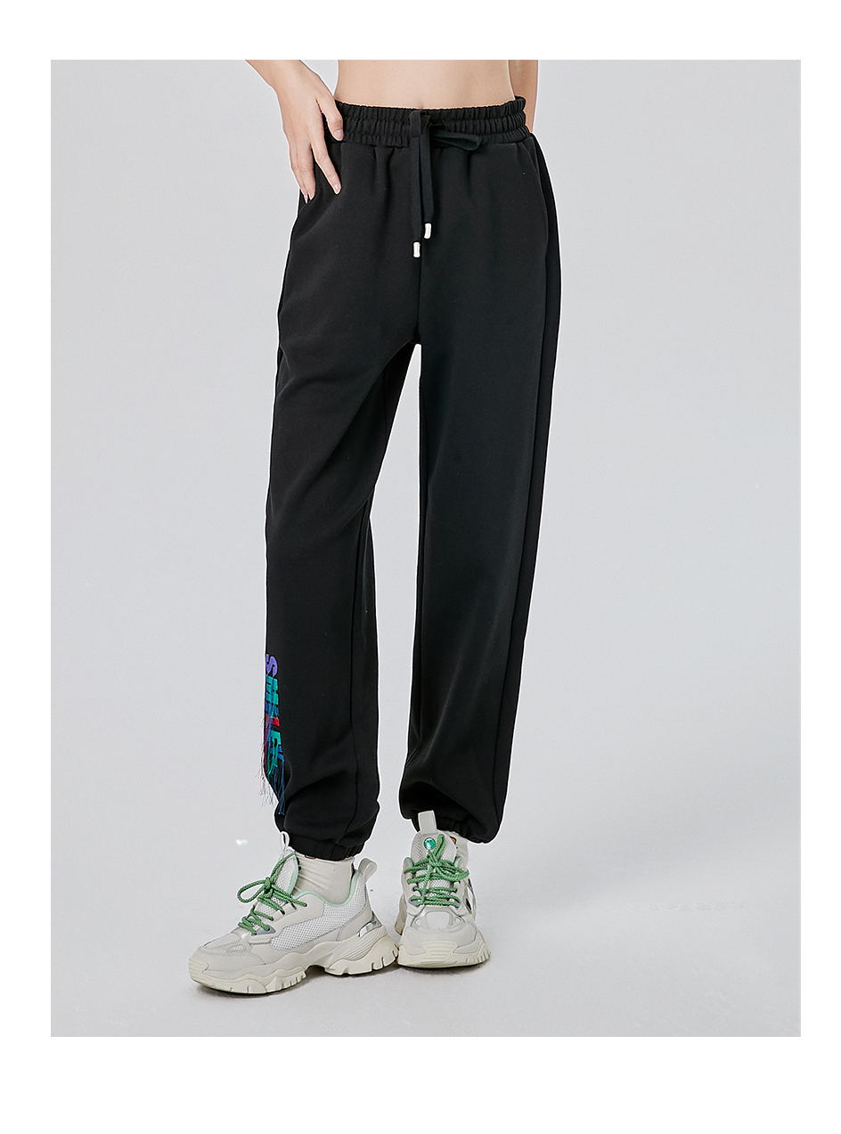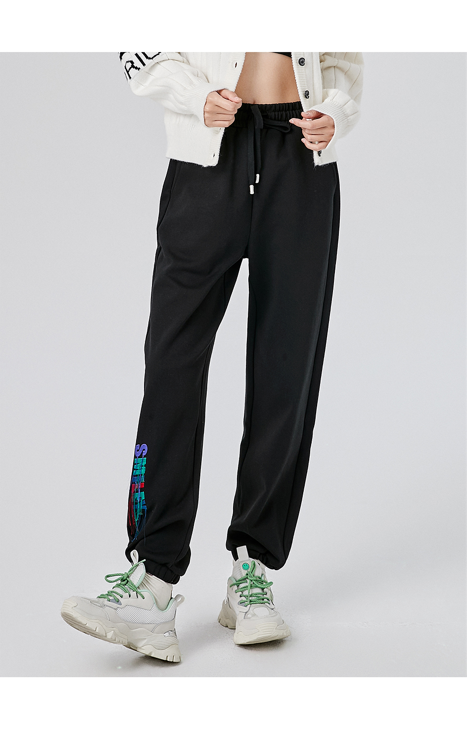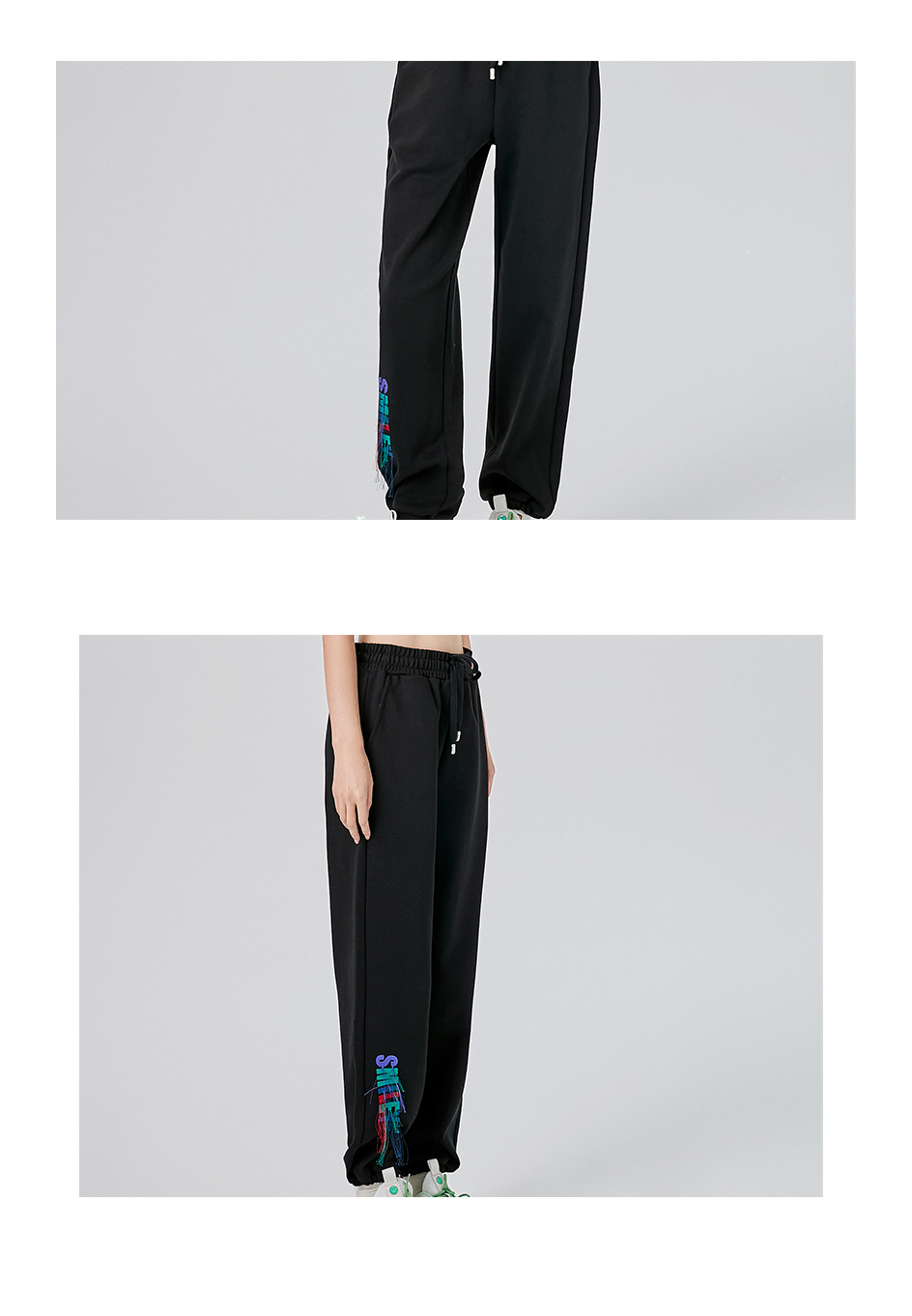 【品名】:经典彩色字母刺绣束脚阔腿卫衣长裤