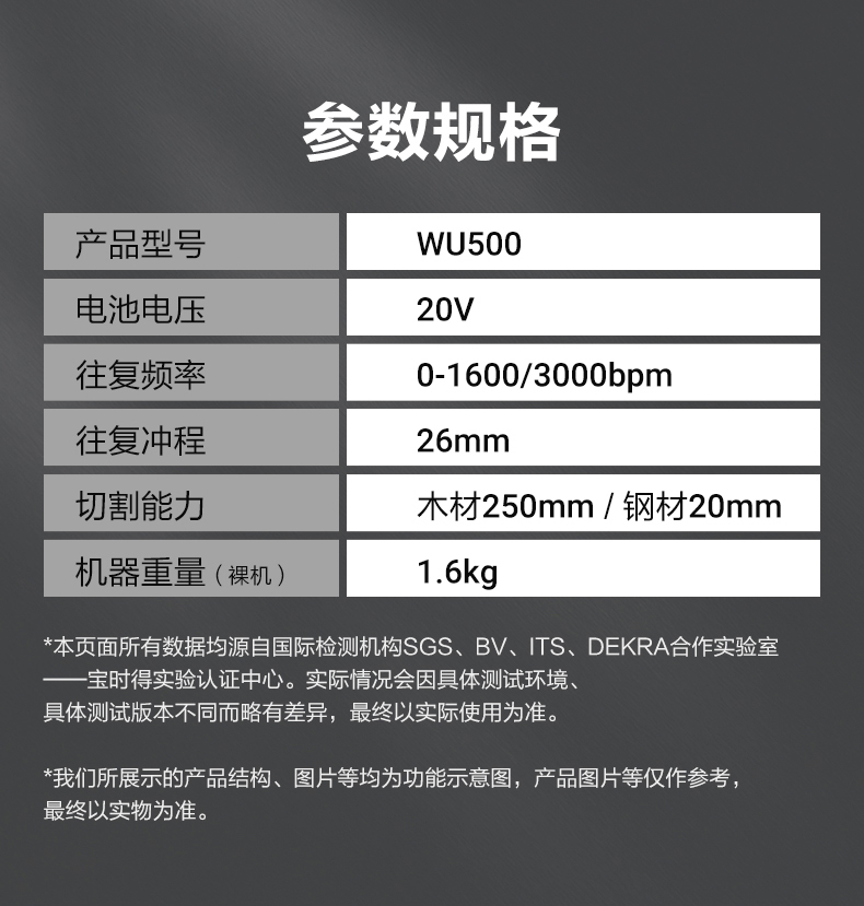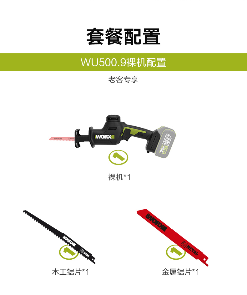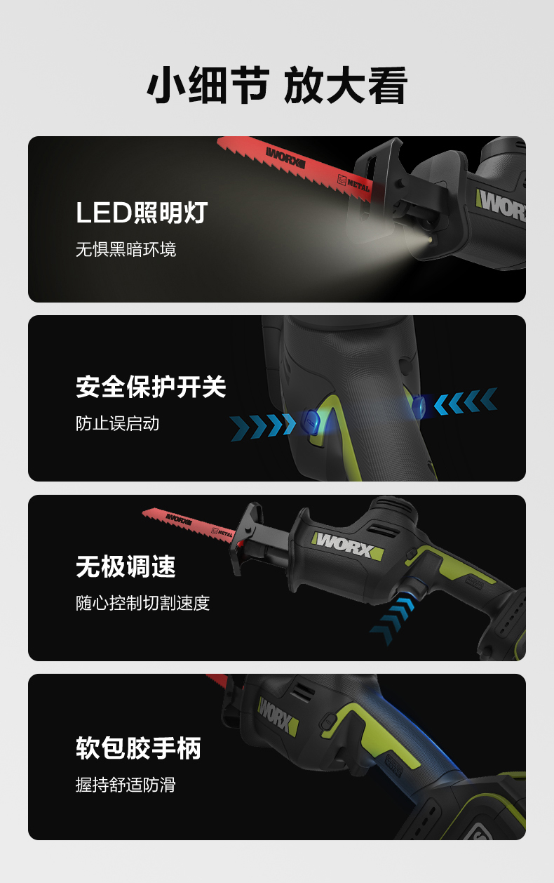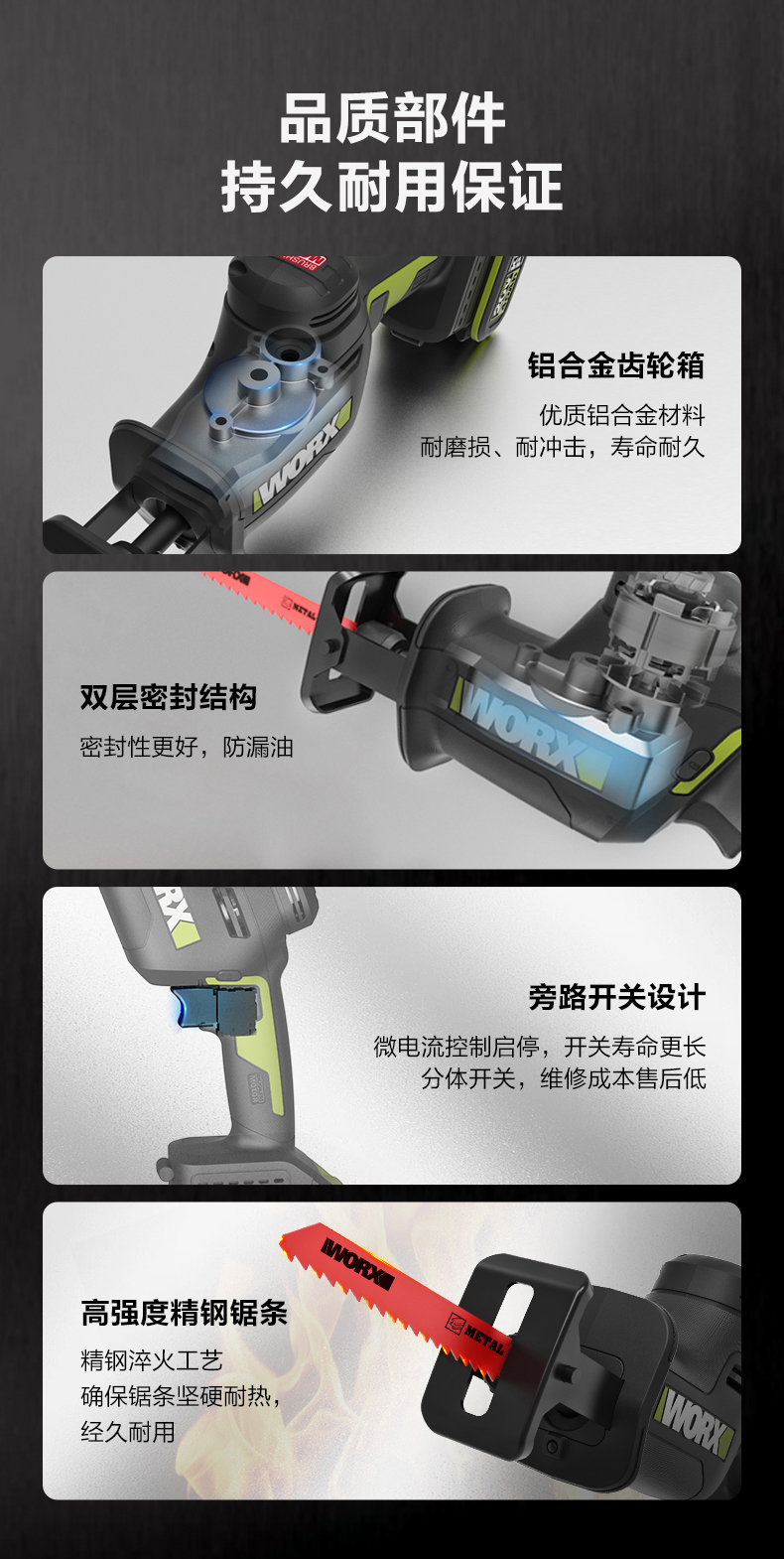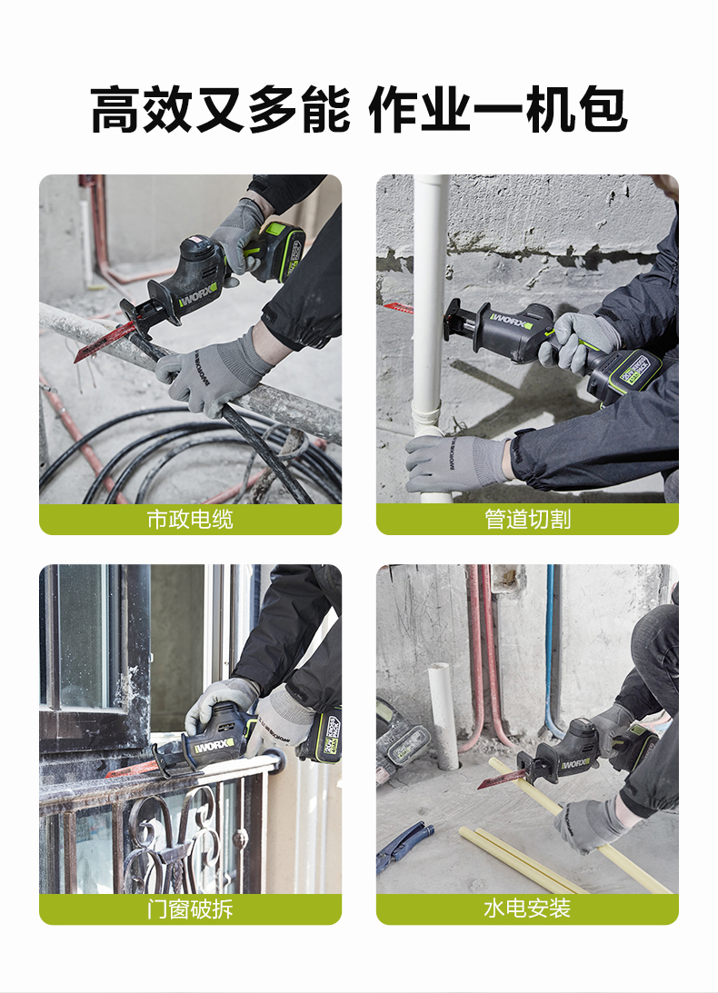 威克士充电往复锯无刷电动马刀锯锯骨头切割金属手持锂电锯WU500
