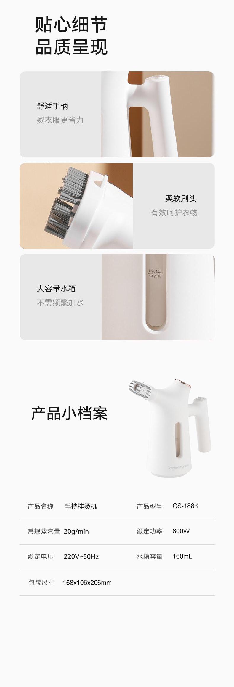 厨创妈咪Kitchenmommy手持挂烫机CS蒸汽熨斗熨烫机便携熨烫CS-188K熨烫机手持挂烫