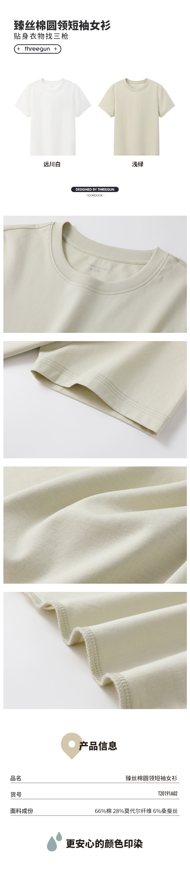 Threegun三枪 臻丝棉圆领短袖女衫-T20191A02