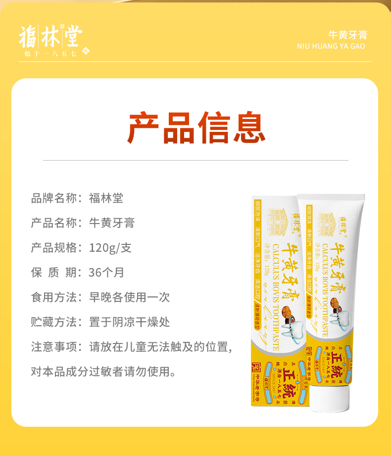 福林堂牛黄牙膏120g/盒
