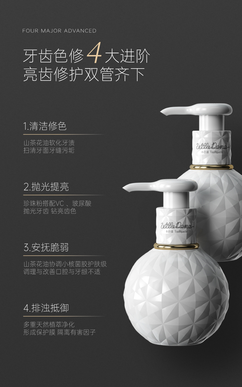 【已下架】小巨蛋山茶花精油色修牙膏180g*1瓶+补充装*1袋 去渍修色修护润龈 [福利品]