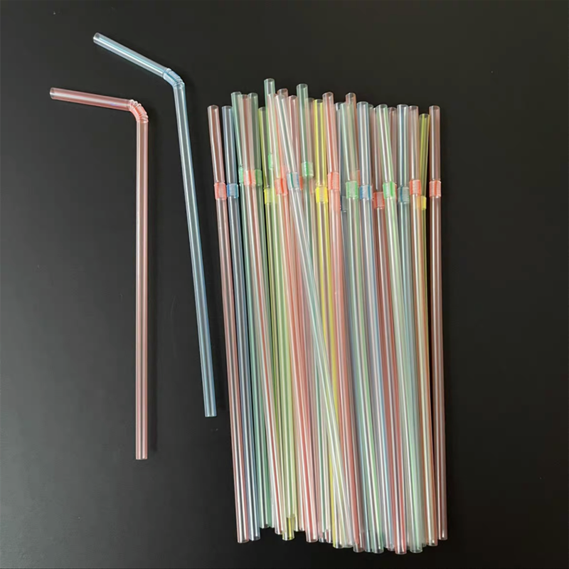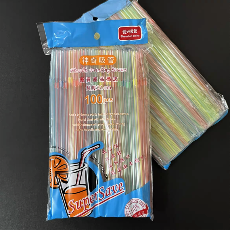 一次性吸管加厚食品级透明彩条可弯头吸管家用商超饮料品吸管 20cm 100支/包