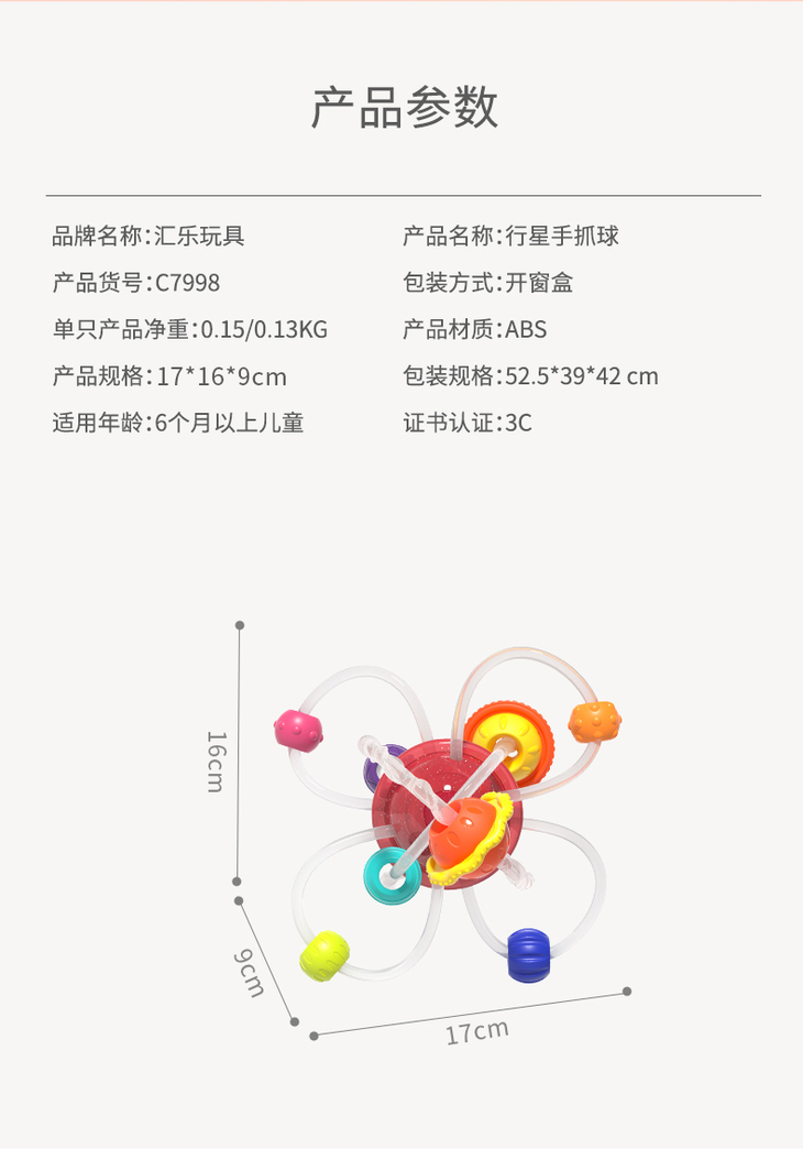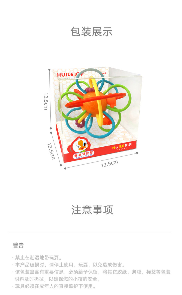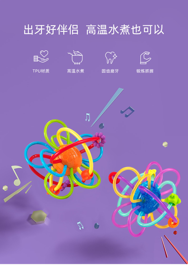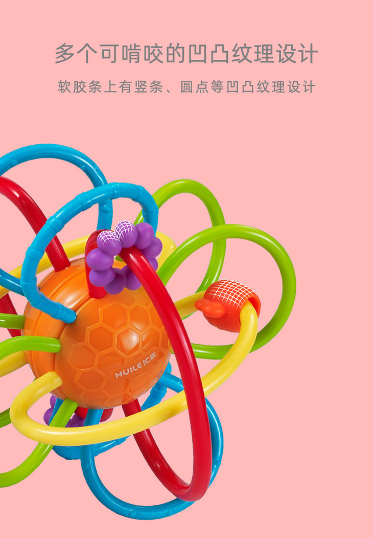 汇乐抓握训练玩具新生婴儿宝宝益智磨牙球牙胶摇铃手抓球3-6-12个月咬胶曼哈顿