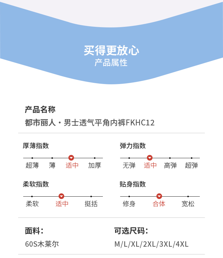 都市丽人潮流时尚人棉平角60S木莱尔平角裤FKHC12