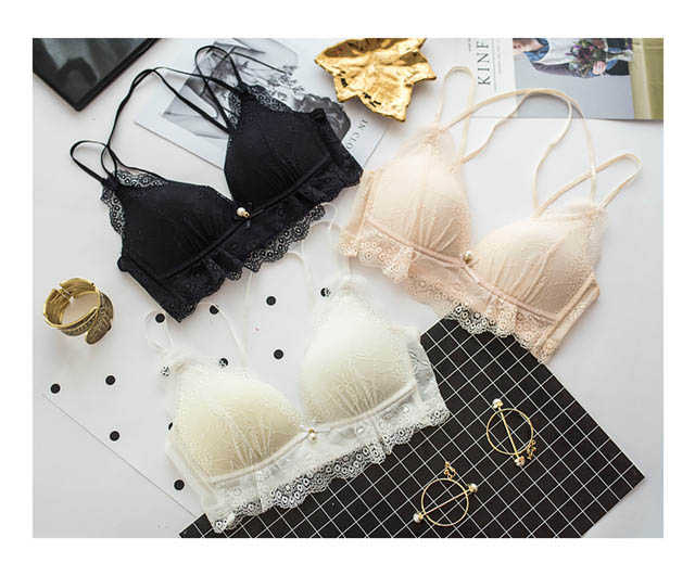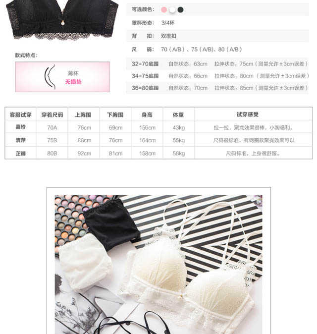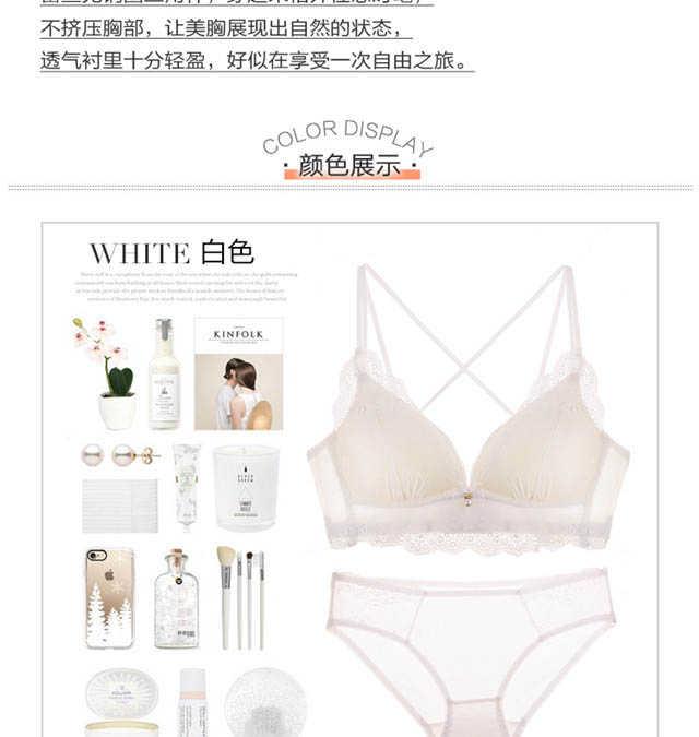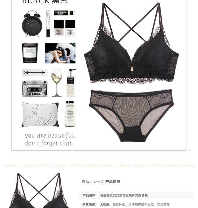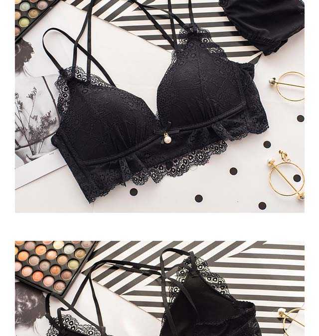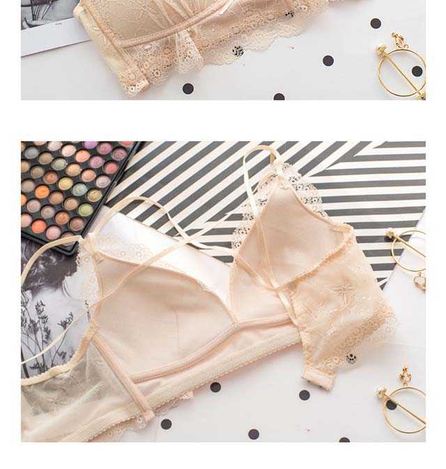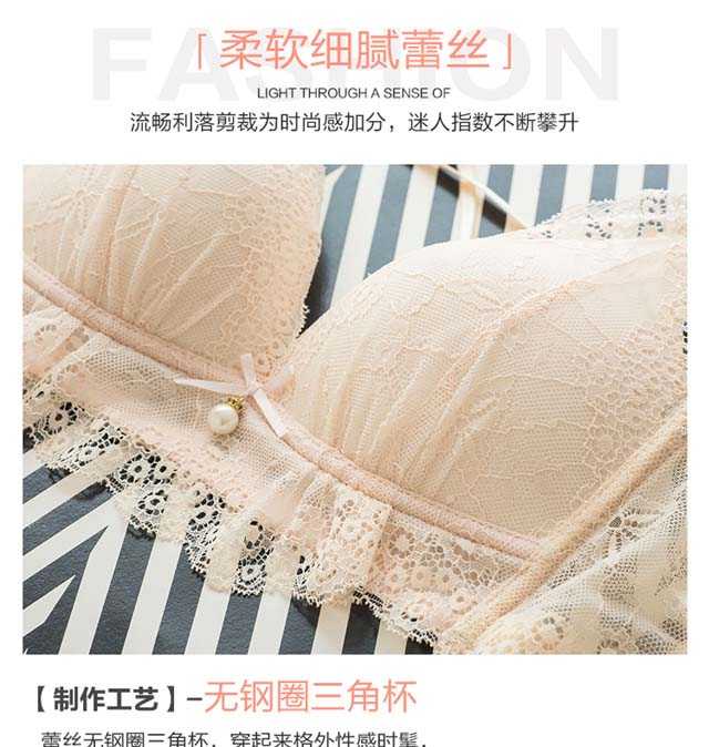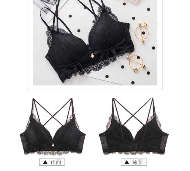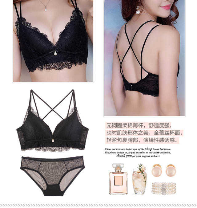内衣套装少女无钢圈交叉美背薄款日系韩版蕾丝性感聚拢文胸罩夏季