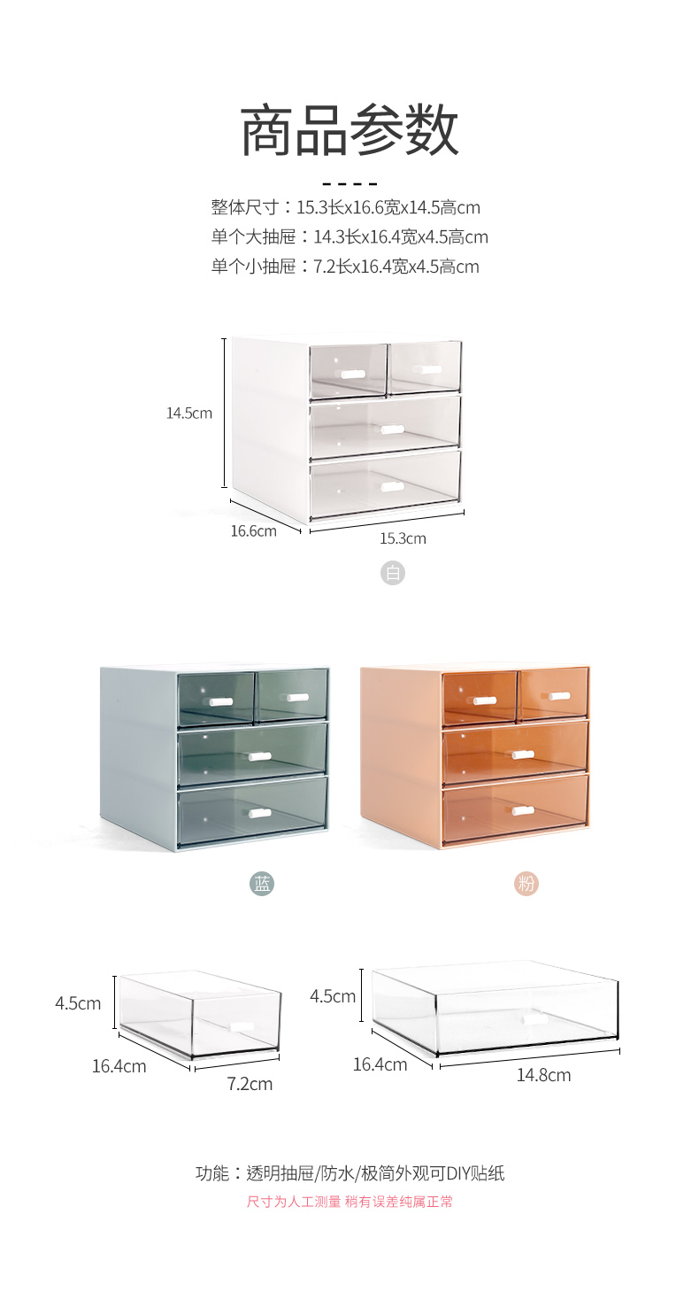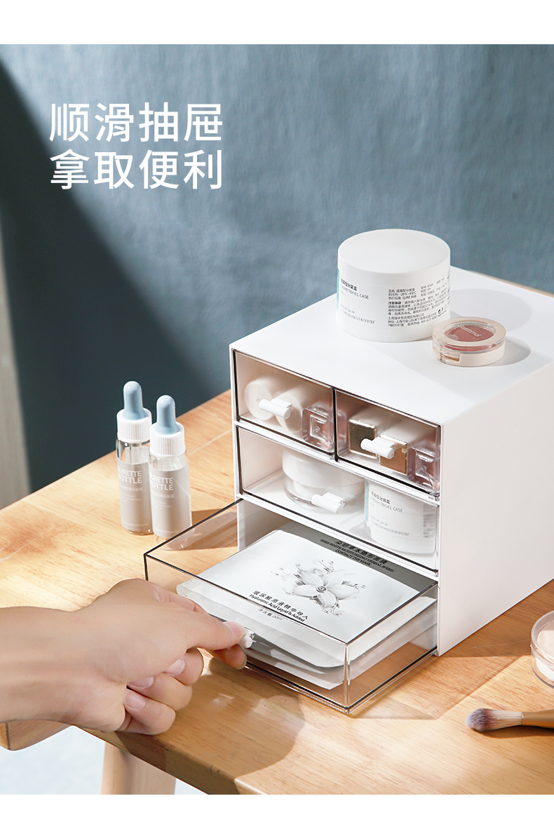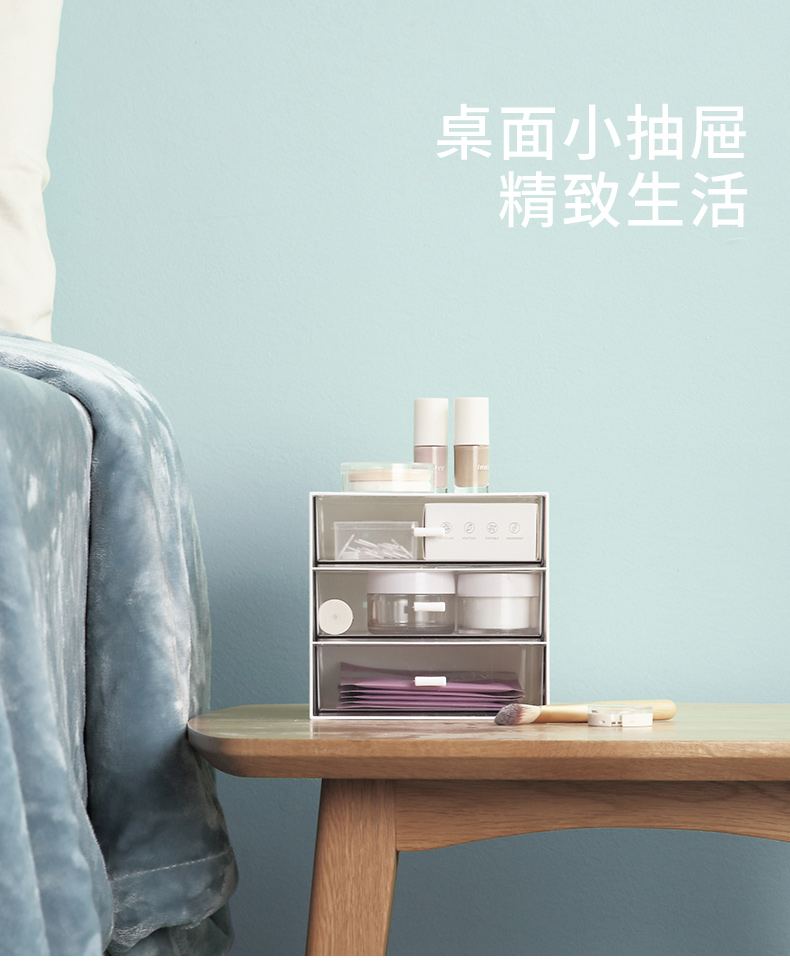 QYeah仟漾桌面三层抽屉收纳盒四格粉色QY2355