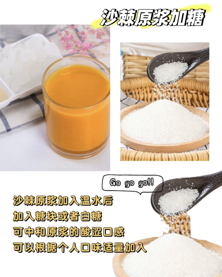 怕酸的宝宝也可以在沙棘原浆中加一些气泡水去中和他的味道