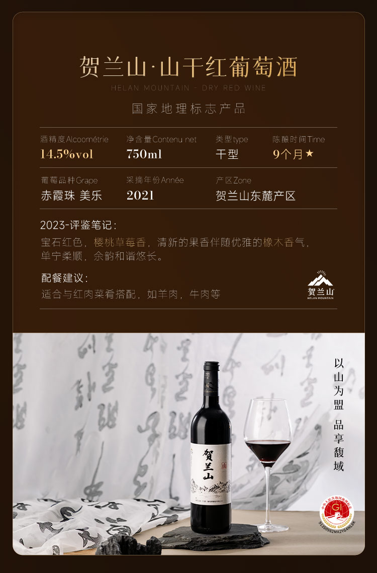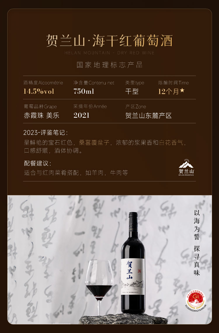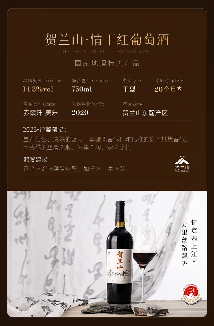 【胡润百富50强酒庄】贺兰山·山海情系列·情干红葡萄酒 宁夏贺兰山东麓产区 14.8%vol