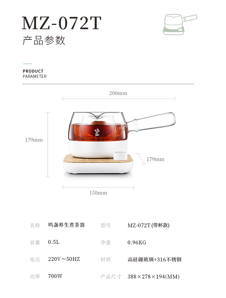鸣盏煮茶器多功能迷你养生壶办公室小型煮茶炉家用黑茶白茶煮茶壶