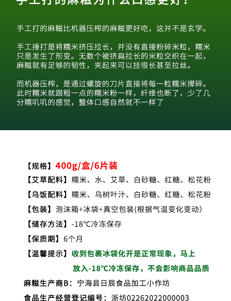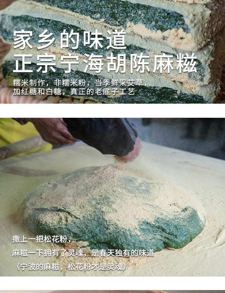 宁波手工艾草麻糍/馒头 胡陈非遗技艺 糯叽叽青块清明糕点 粗粮青馒头青麦糕