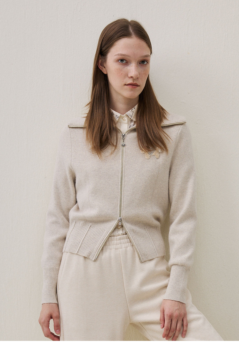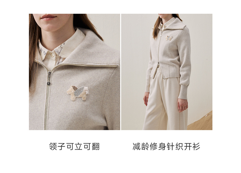谜底针织开衫长袖2025冬季新品时髦显瘦双开拉链毛衣女254MZ1912