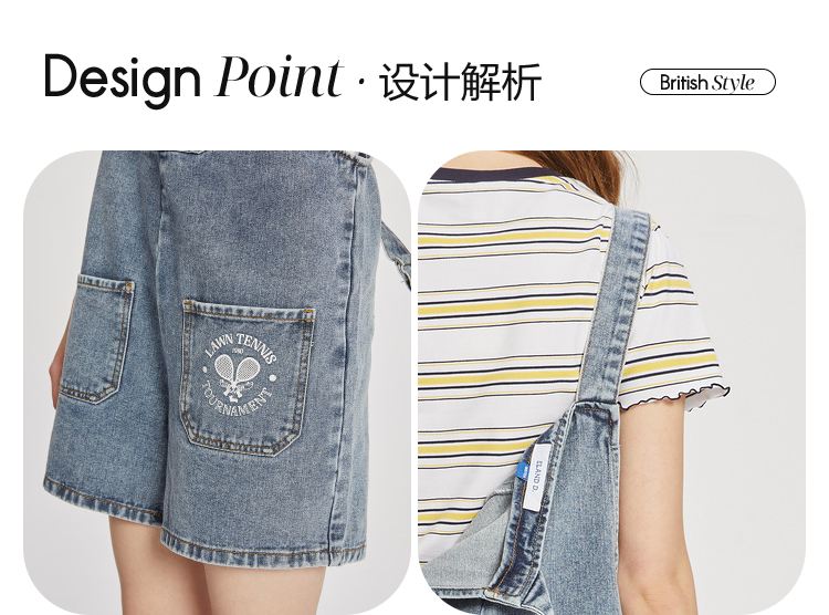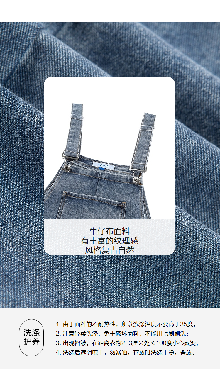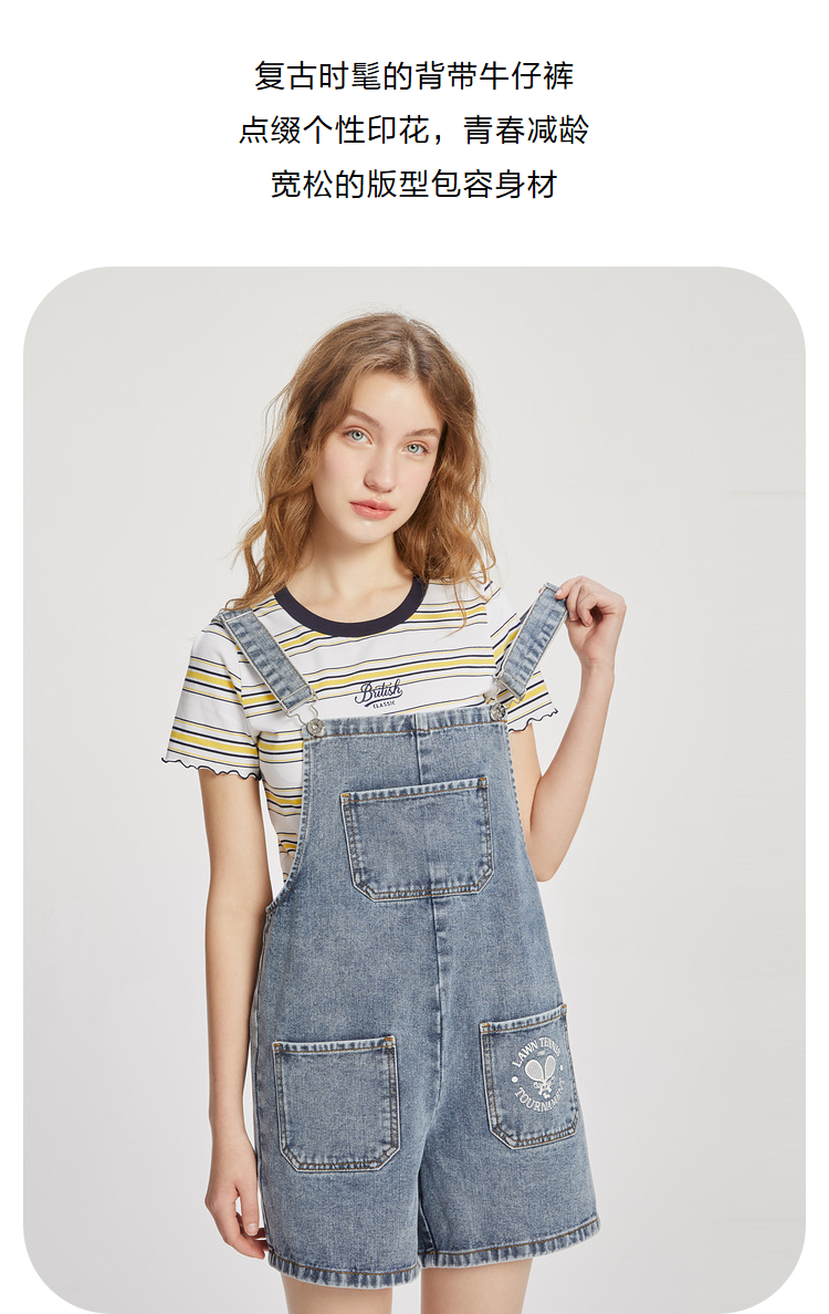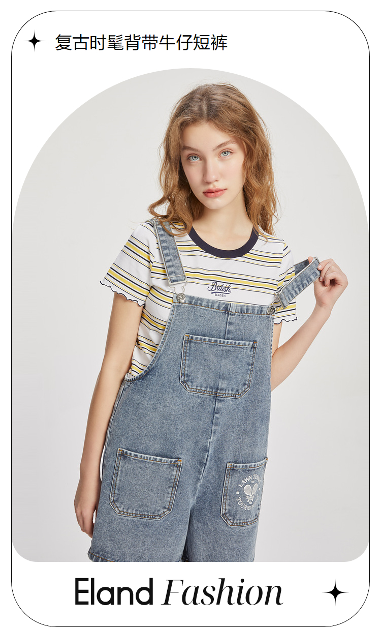 ELAND衣恋小个子俏皮可爱减龄显瘦背带牛仔短裤女EETJC24H2M