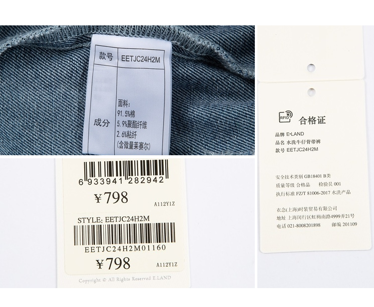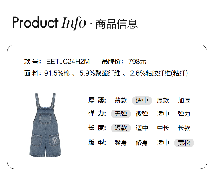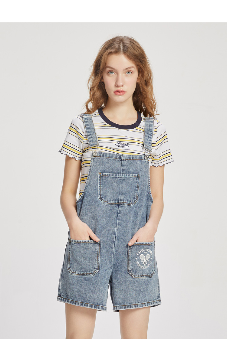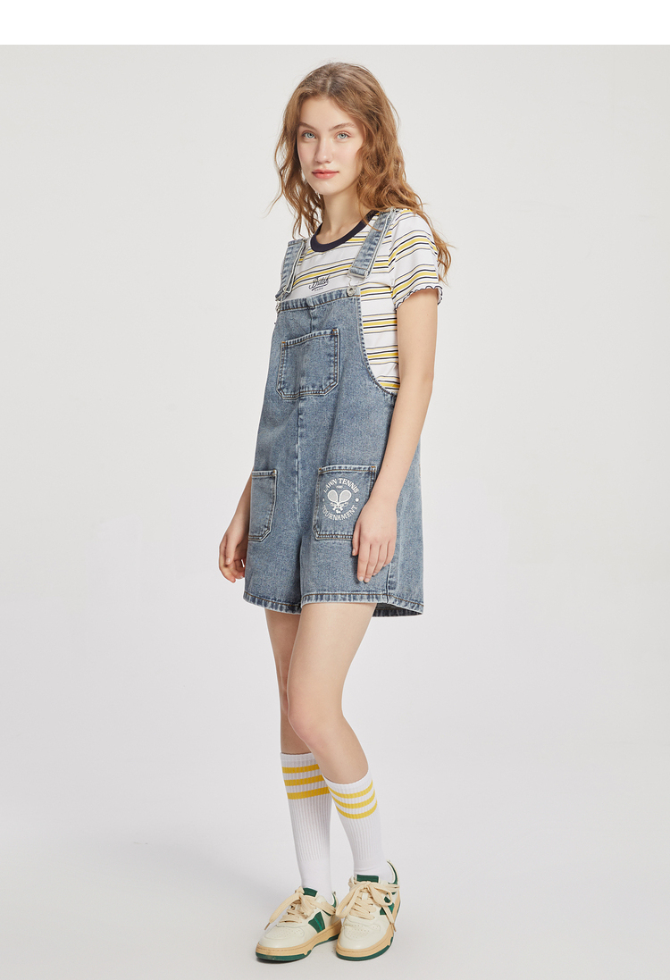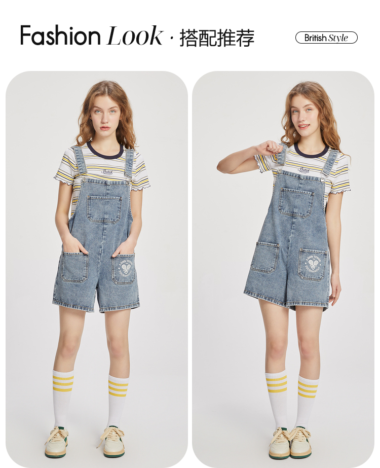ELAND衣恋小个子俏皮可爱减龄显瘦背带牛仔短裤女EETJC24H2M