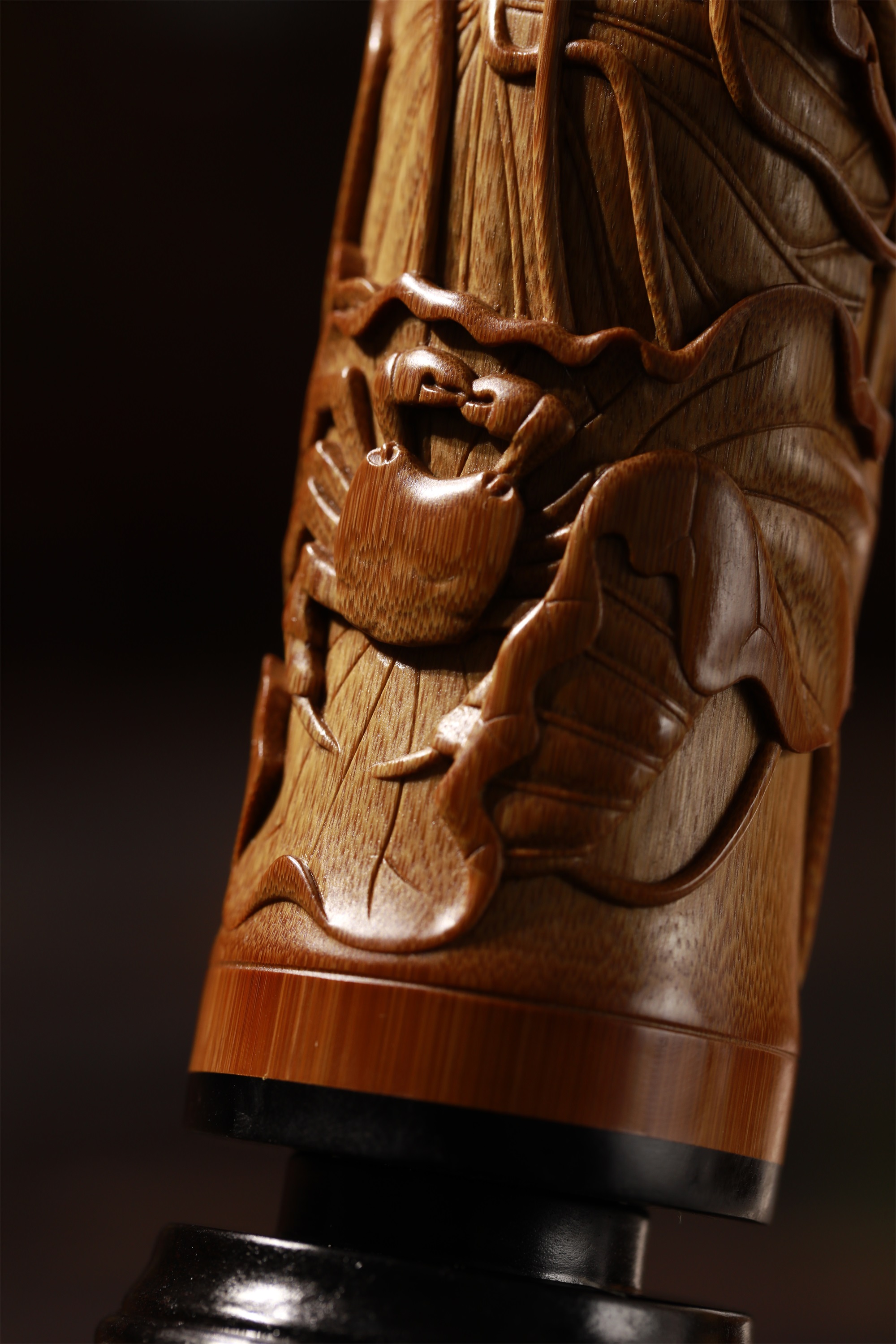 品名:荷蟹/和谐°竹雕笔筒