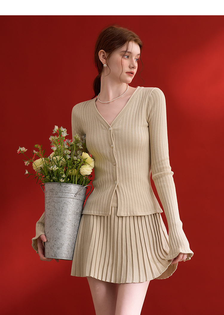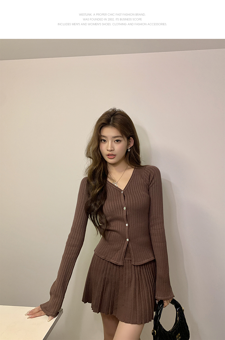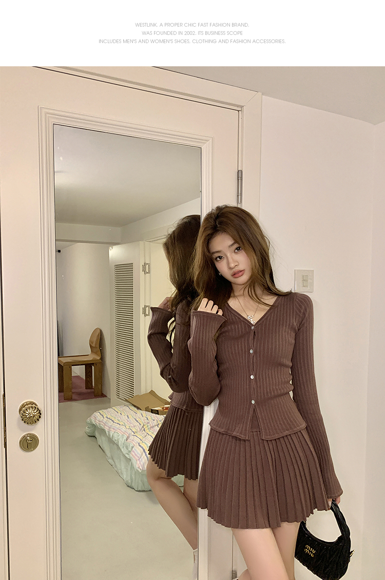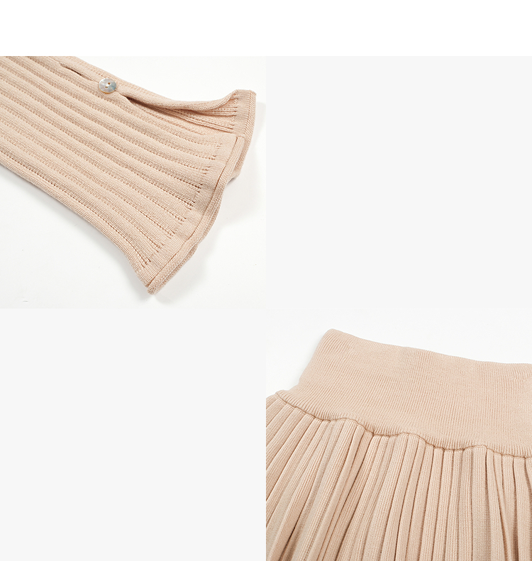 西遇HK复古美拉德套装女早春新款针织上衣搭配百褶裙两件套SS140779