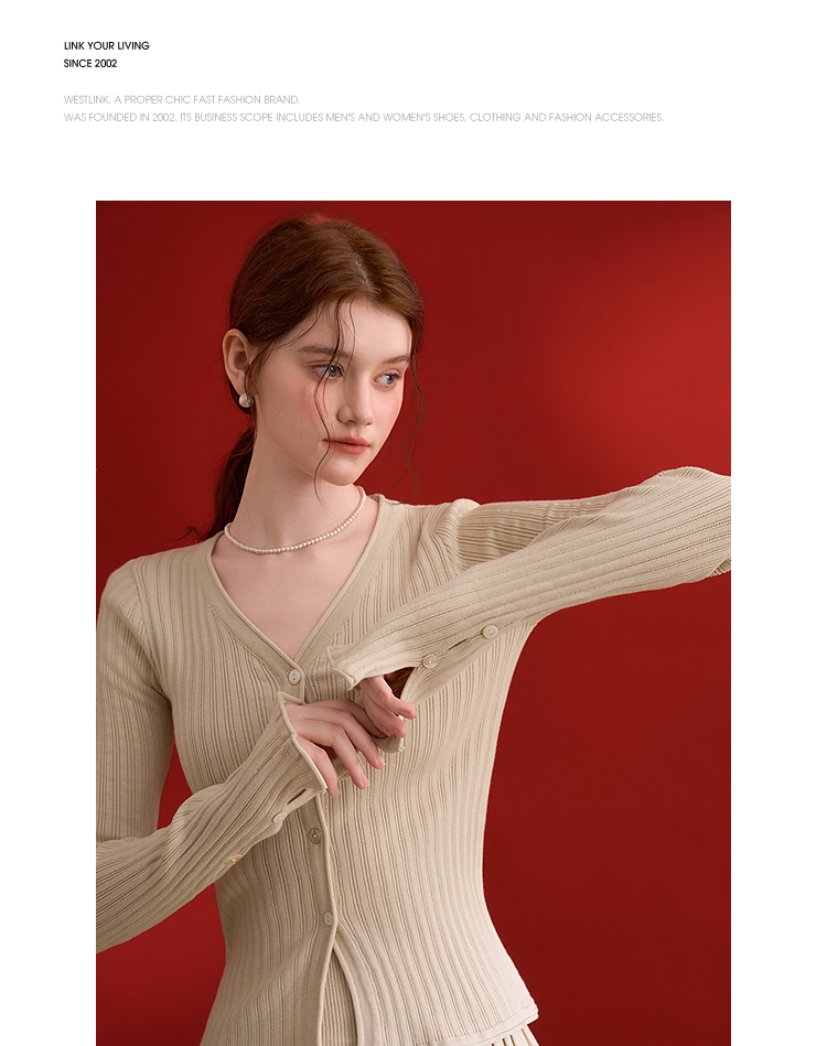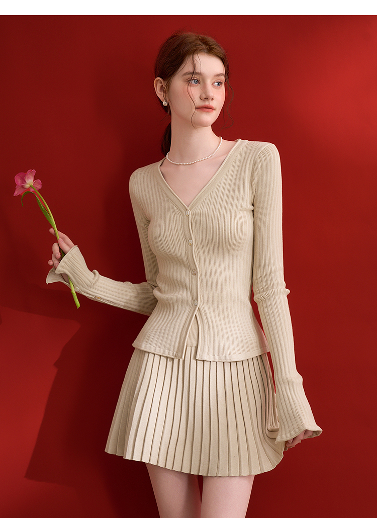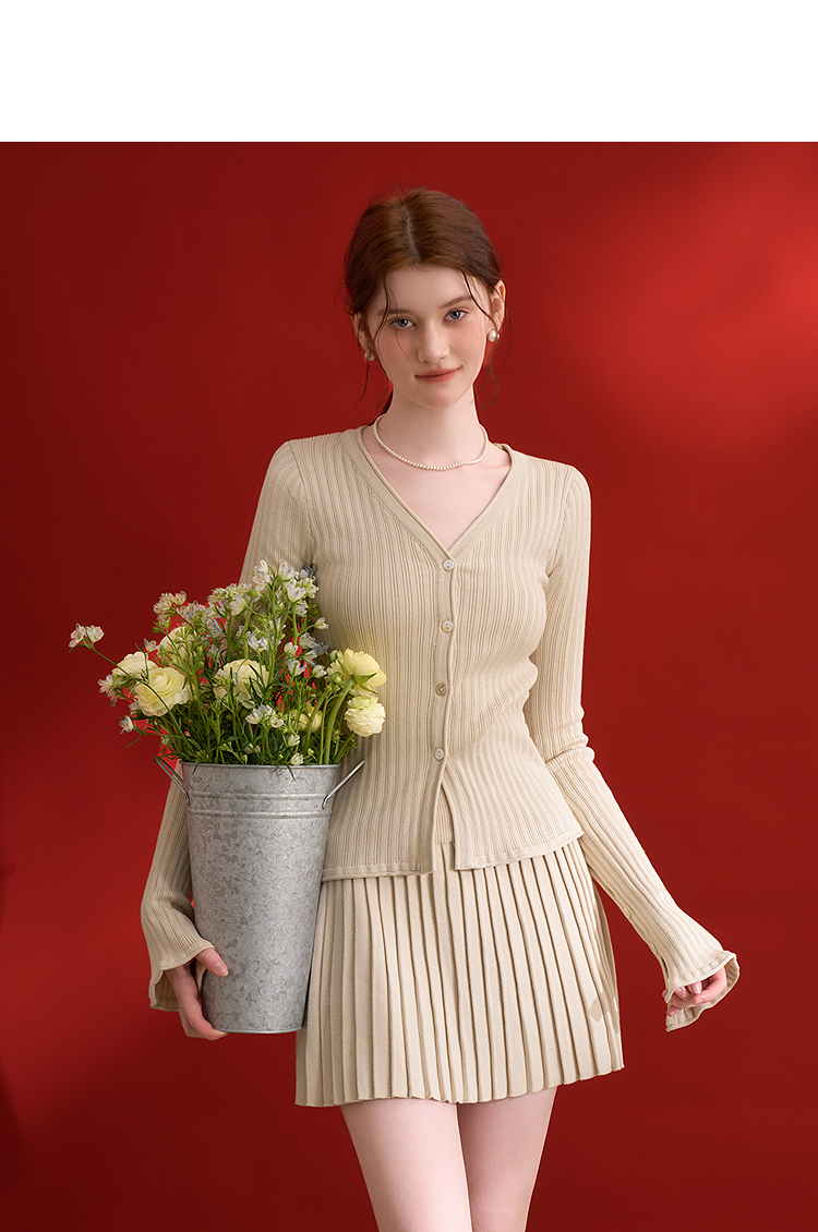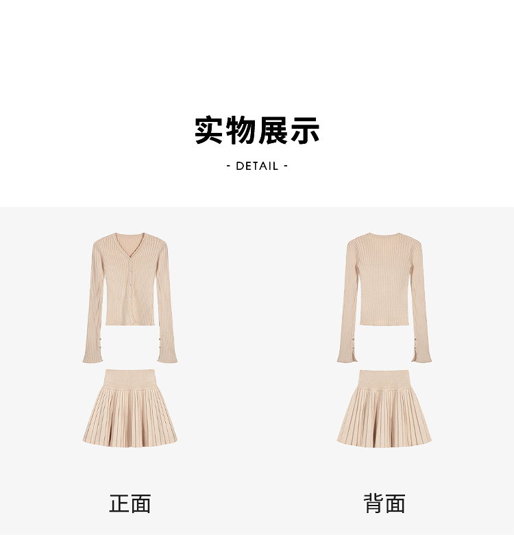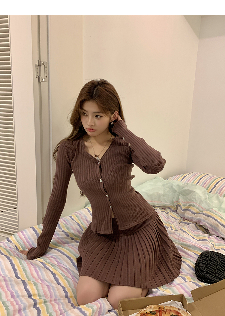 西遇HK复古美拉德套装女早春新款针织上衣搭配百褶裙两件套SS140779