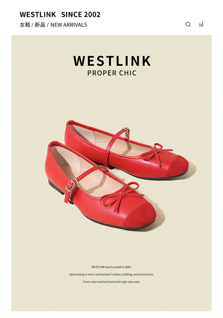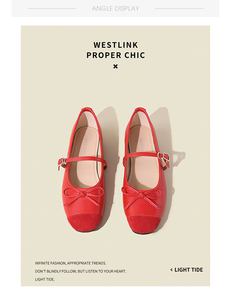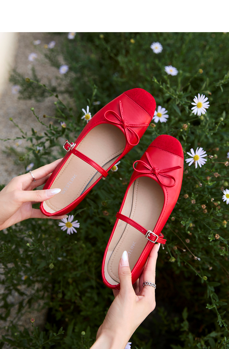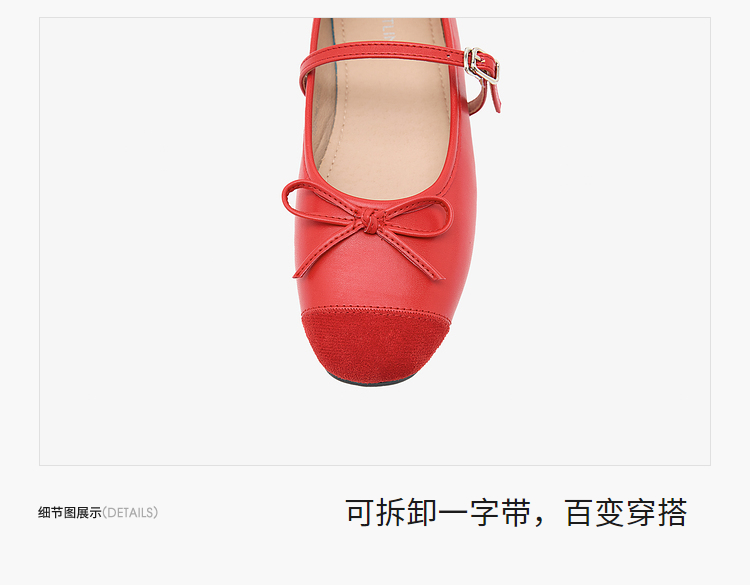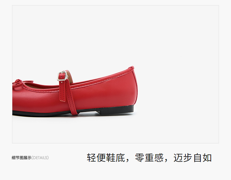 西遇法式芭蕾舞鞋女新款早春蝴蝶结浅口单鞋红色低跟玛丽珍鞋D0047346