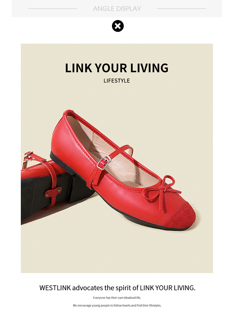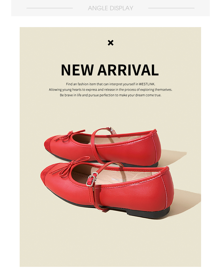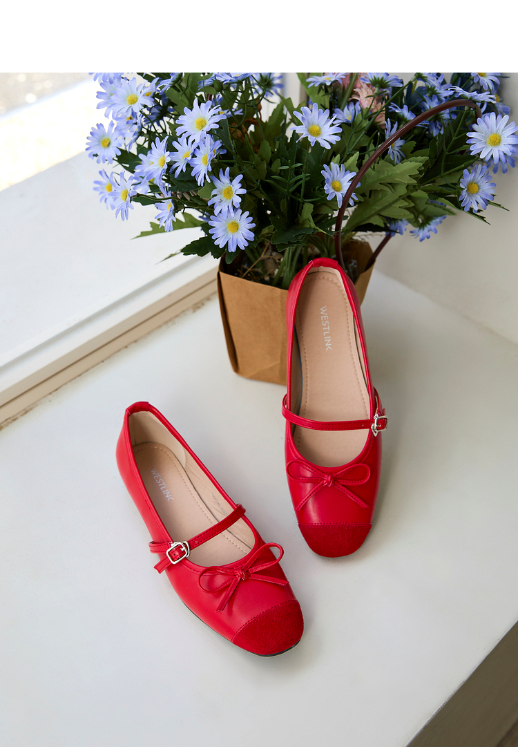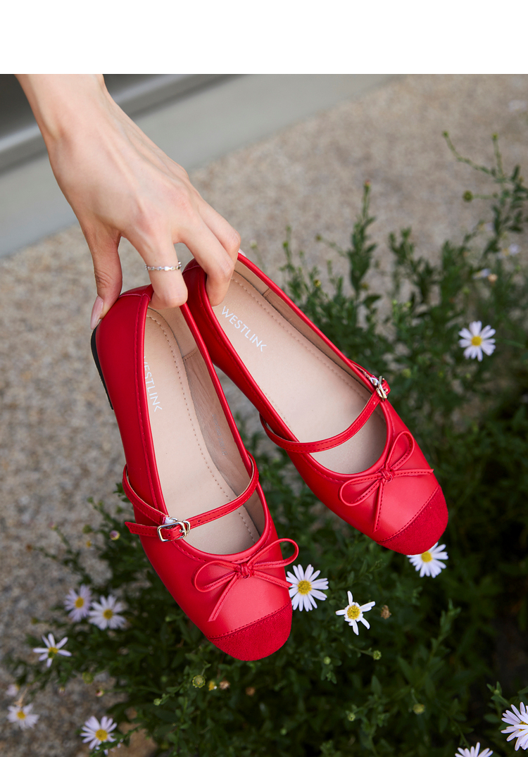 西遇法式芭蕾舞鞋女新款早春蝴蝶结浅口单鞋红色低跟玛丽珍鞋D0047346