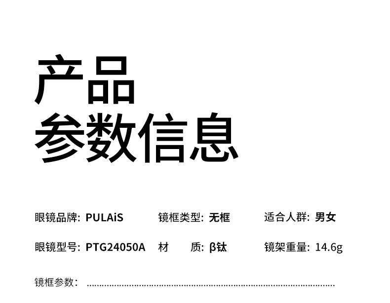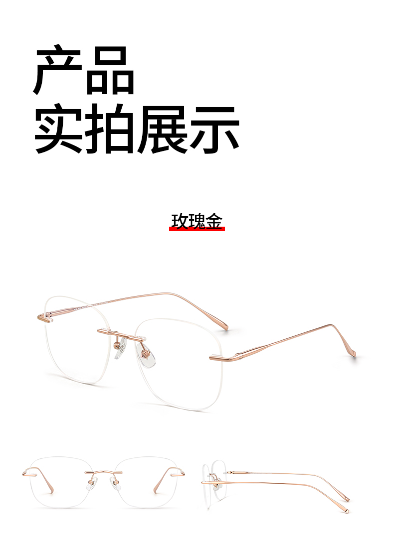 普莱斯光学镜框PTG24050A 气质无框 轻盈β钛 男女同款 四色可选
