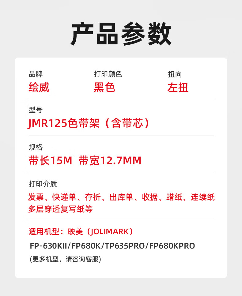 绘威JMR125色带架 适用映美Jolimark FP-630KII FP-680K TP-635Pro打印机色带