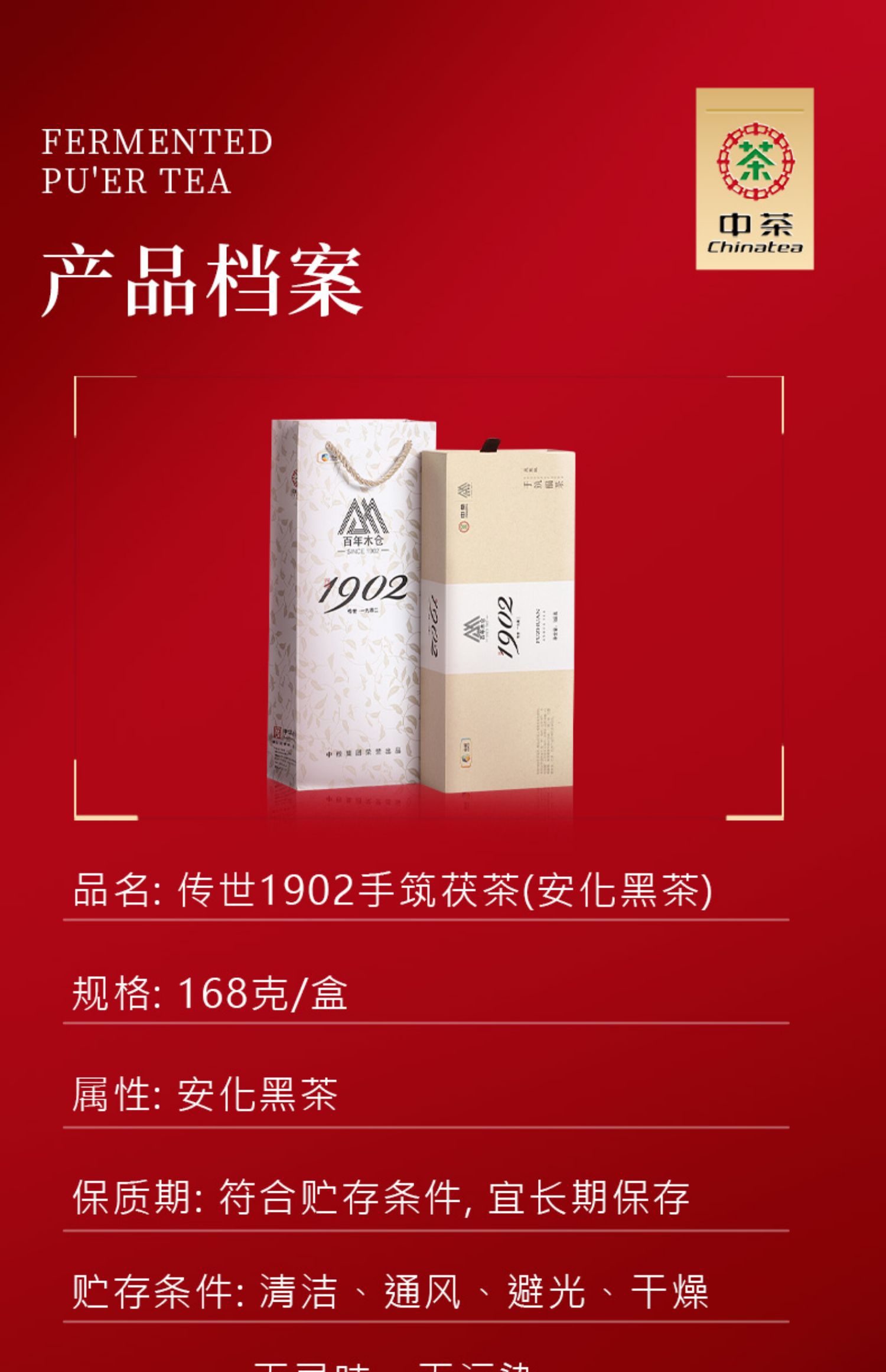 中茶安化黑茶手工金花茯砖茶叶中粮传世1902手筑茯茶168g