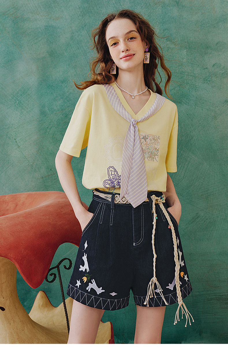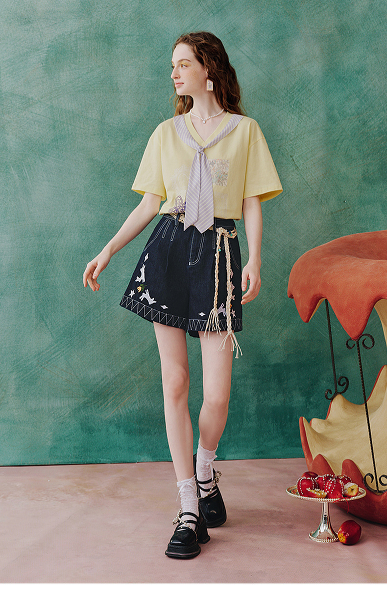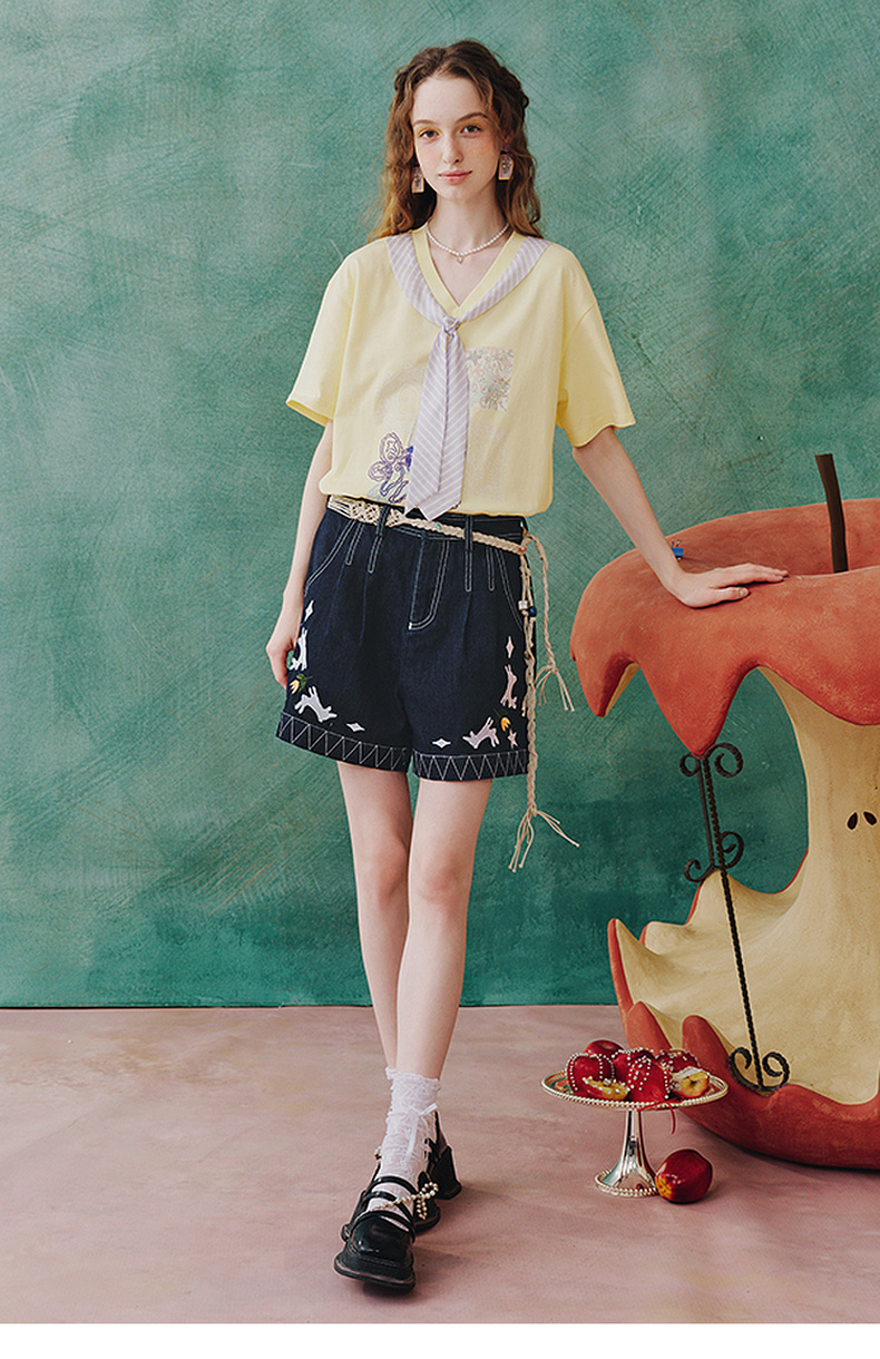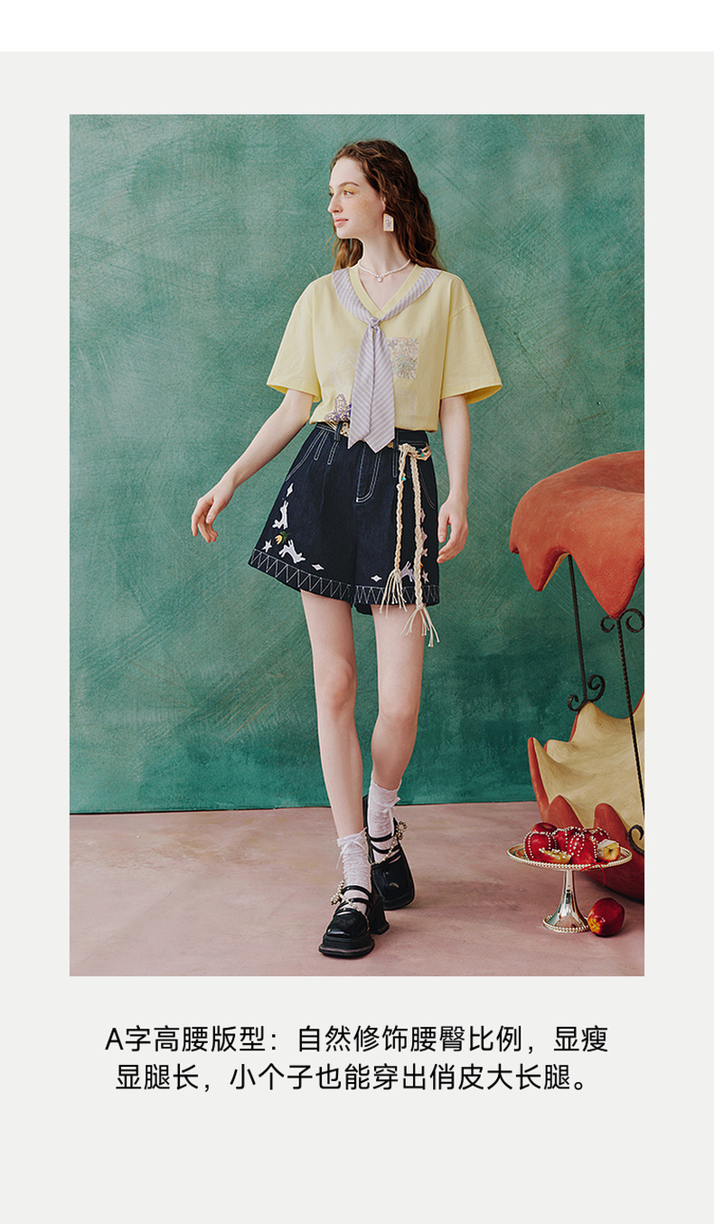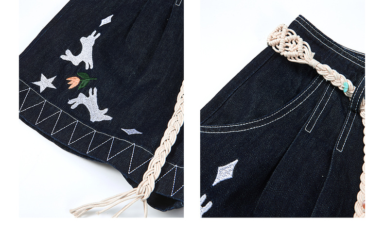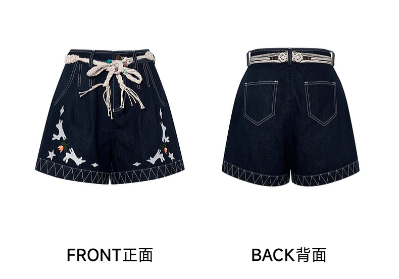 两三事 飞兔幻境 2025夏季新款复古兔兔刺绣编织腰带牛仔裤女