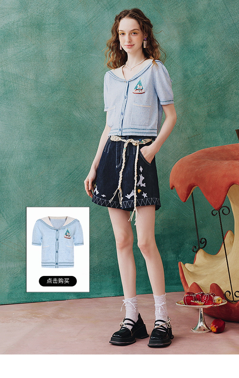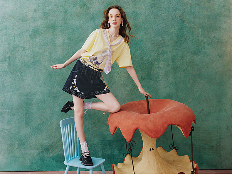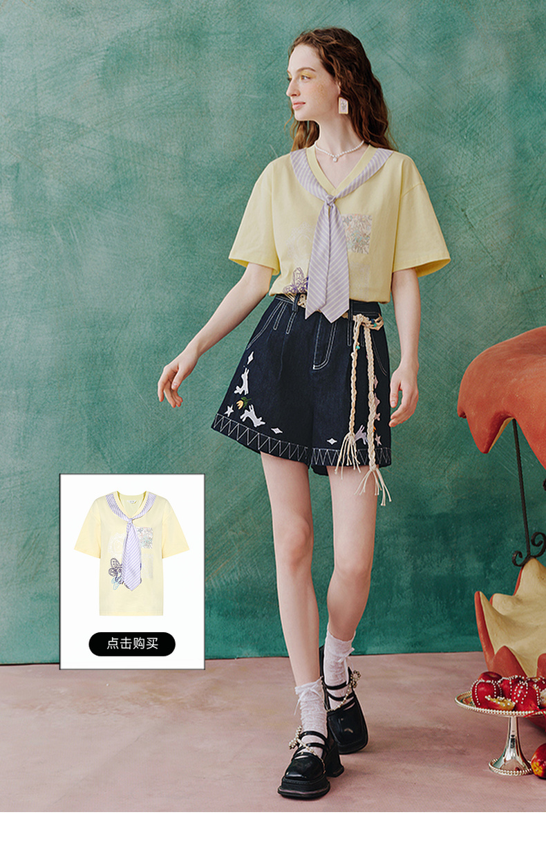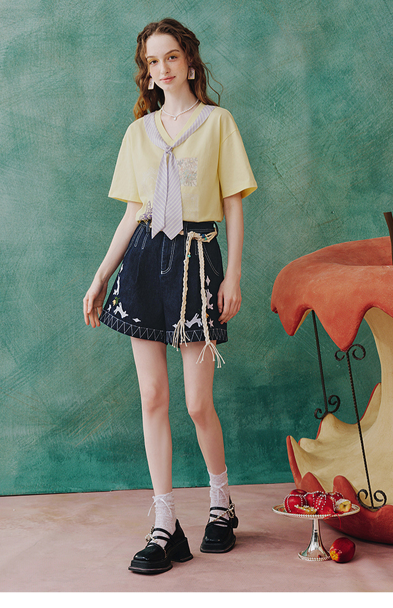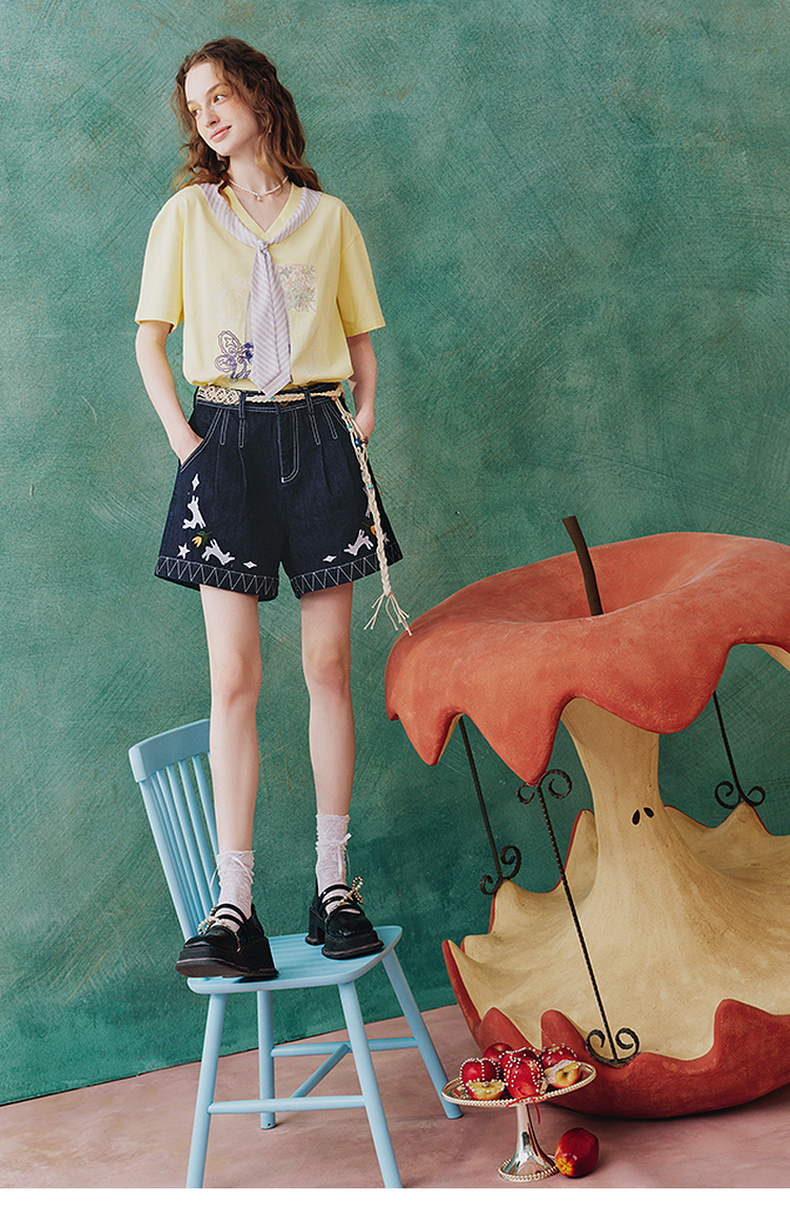 两三事 飞兔幻境 2025夏季新款复古兔兔刺绣编织腰带牛仔裤女