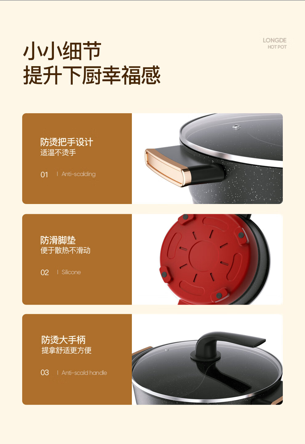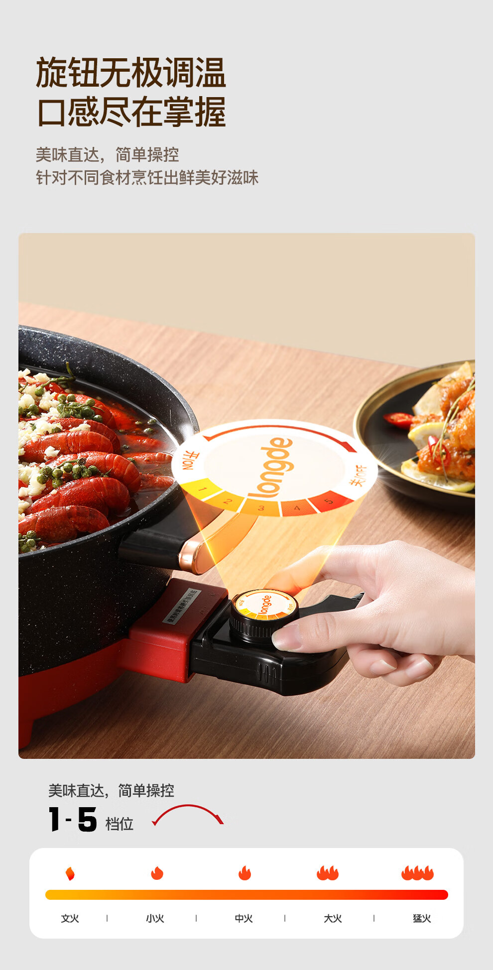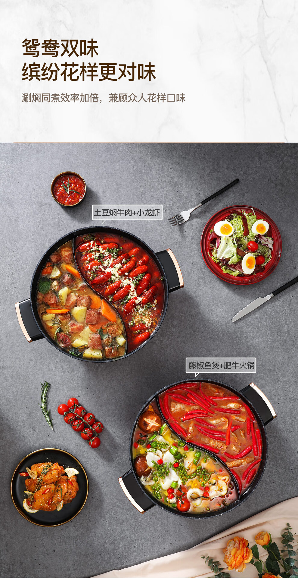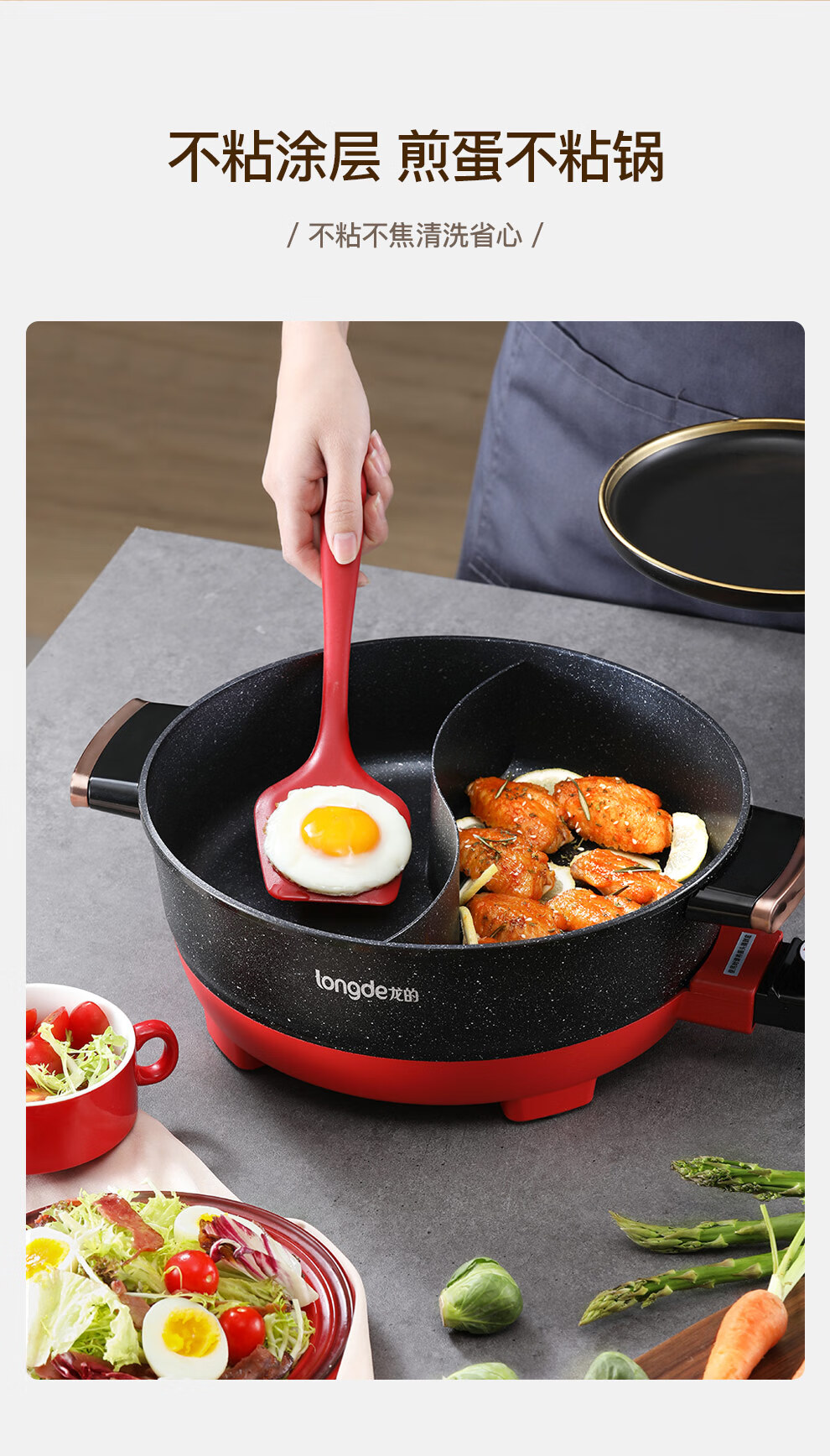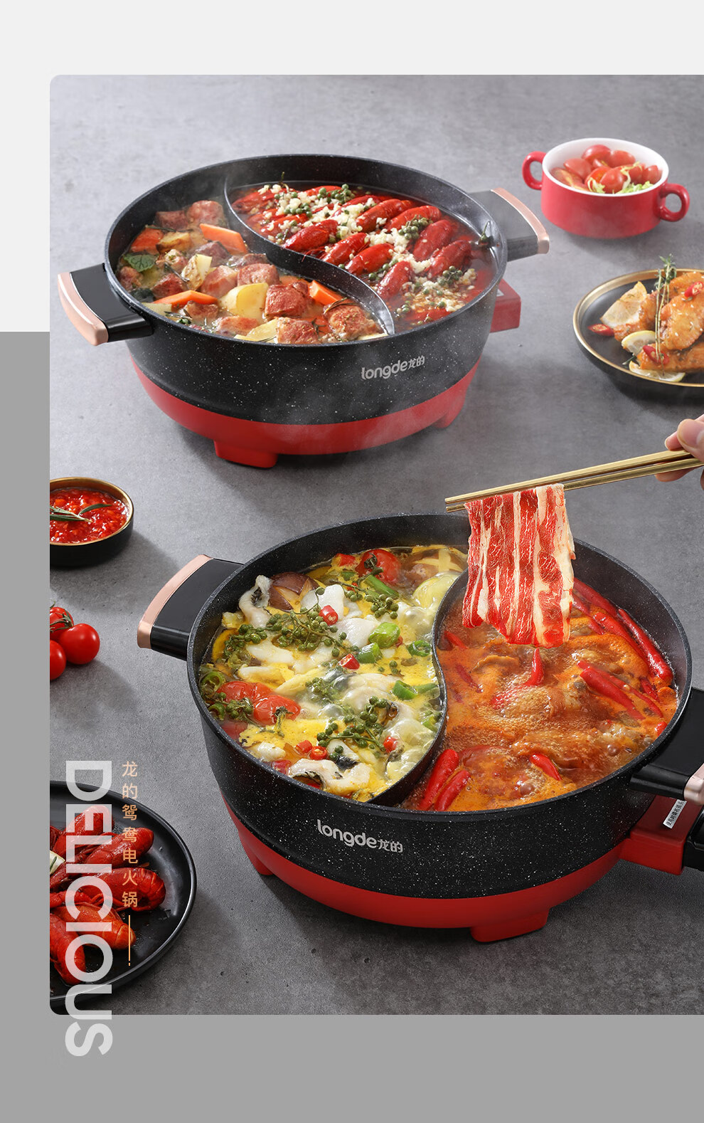 【小家电】龙的longde电火锅 双拼鸳鸯锅 5L大容量火锅专用锅 无水干烧保护防烫把手电锅一体家用多功能料理锅 LD-HG5030 HF