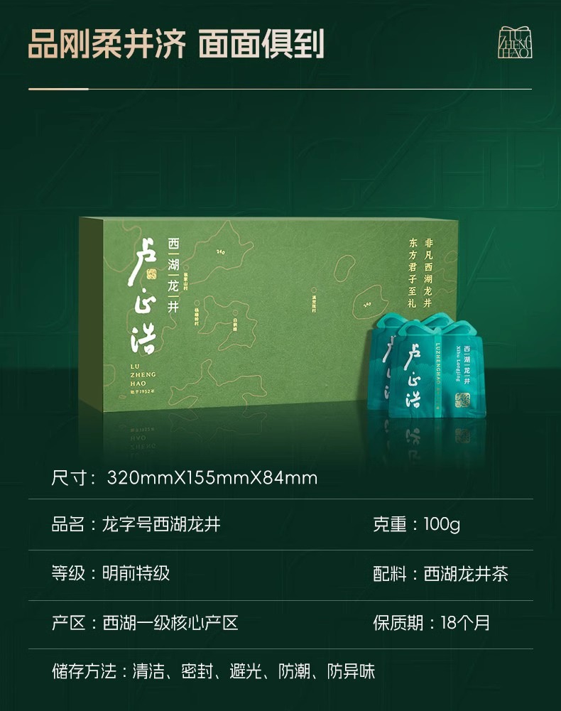2026年新茶上市【龙字礼盒】卢正浩龙字号礼盒装西湖龙井茶明前特级高端茶叶送礼 100克