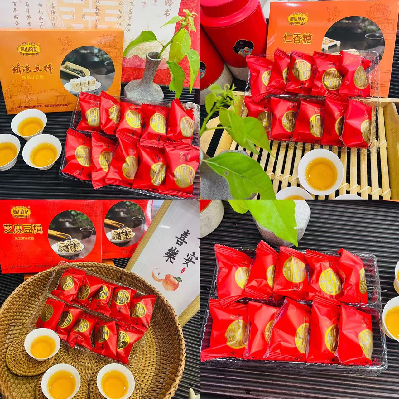 【年货节特惠】大吉物食 潮糖福喜临门潮汕 四锦糖 椰丝味软糖+黑芝麻味软糖+仁香糖 +芝麻明糖各*3 220g
