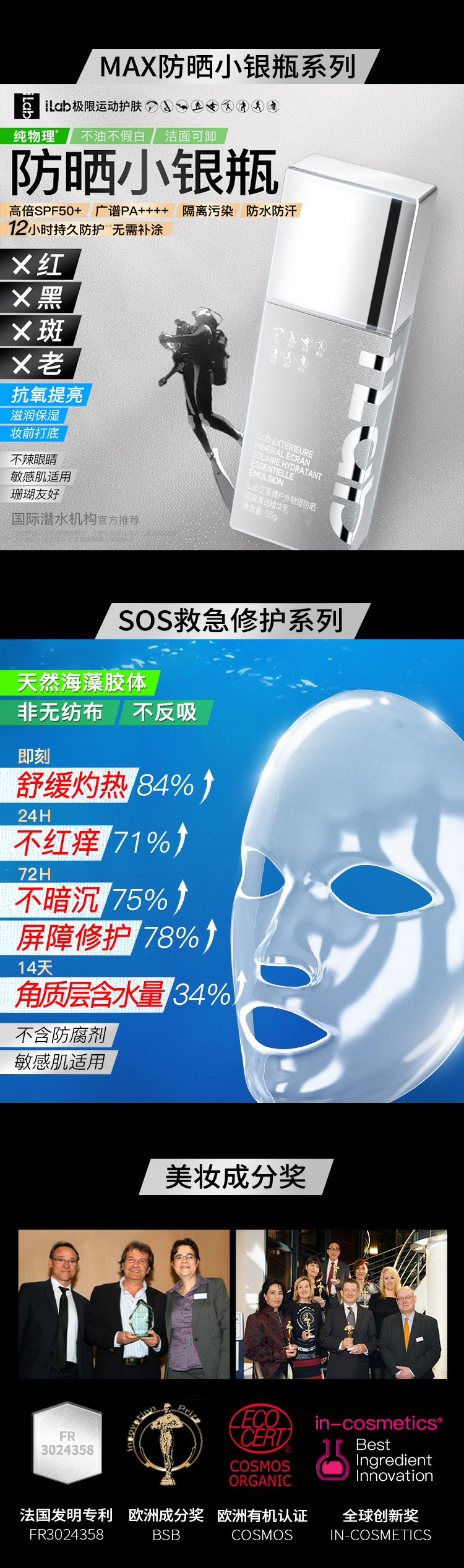 - ⭐️ 源起十九世纪法国【海洋疗法】来自深海的【冻龄修护】能量 ⭐️ 法国极限飞行节官方护肤品【抗光抗尘抗老】国际潜水机构推荐【对珊瑚无害】 ⭐️ 法新社赞誉【Best Outdoor Skin Car