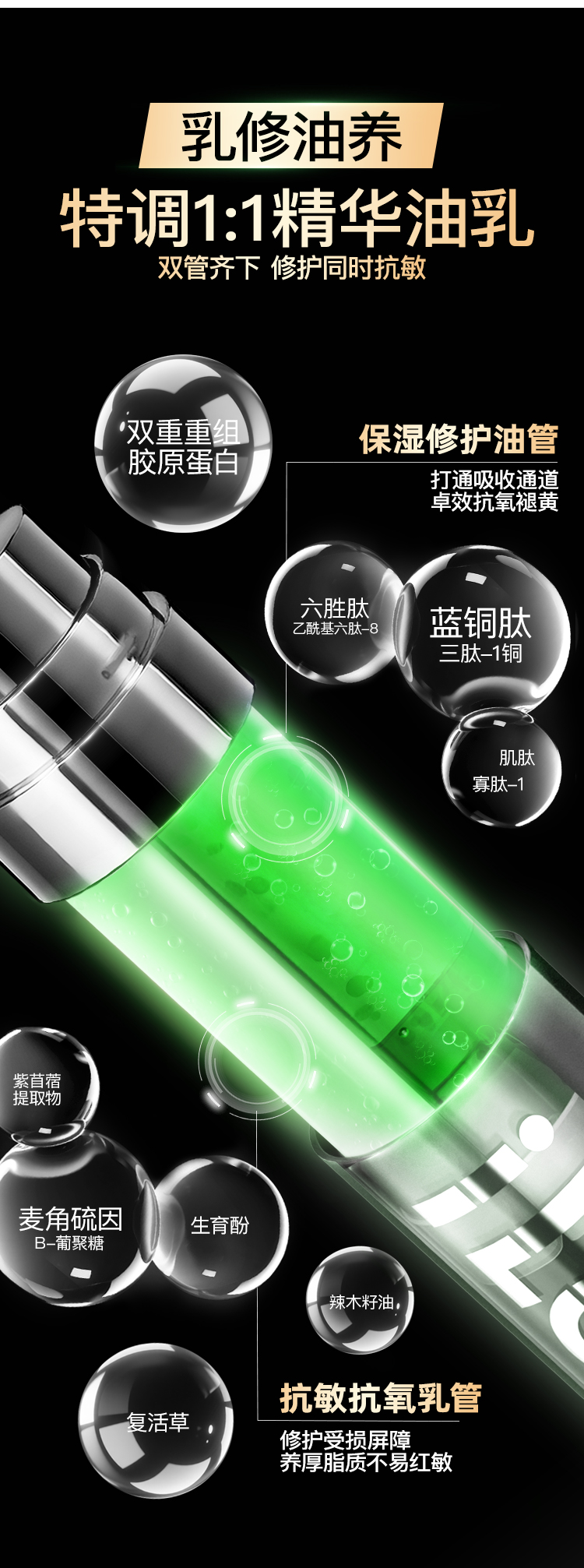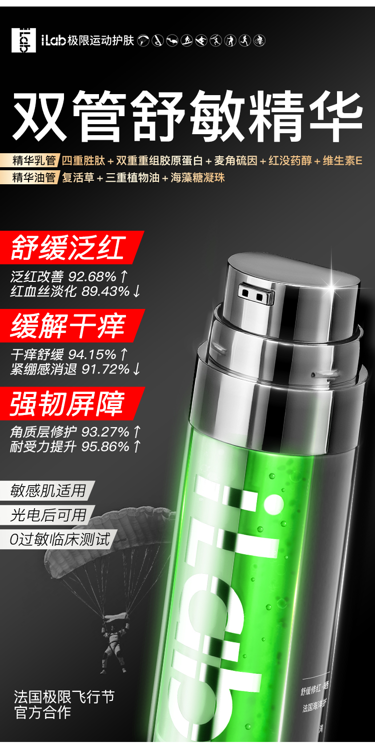 iLab艾莱博双管舒敏精华乳(多肽凝珠胶原)修护屏障/抗氧抗糖 48ml