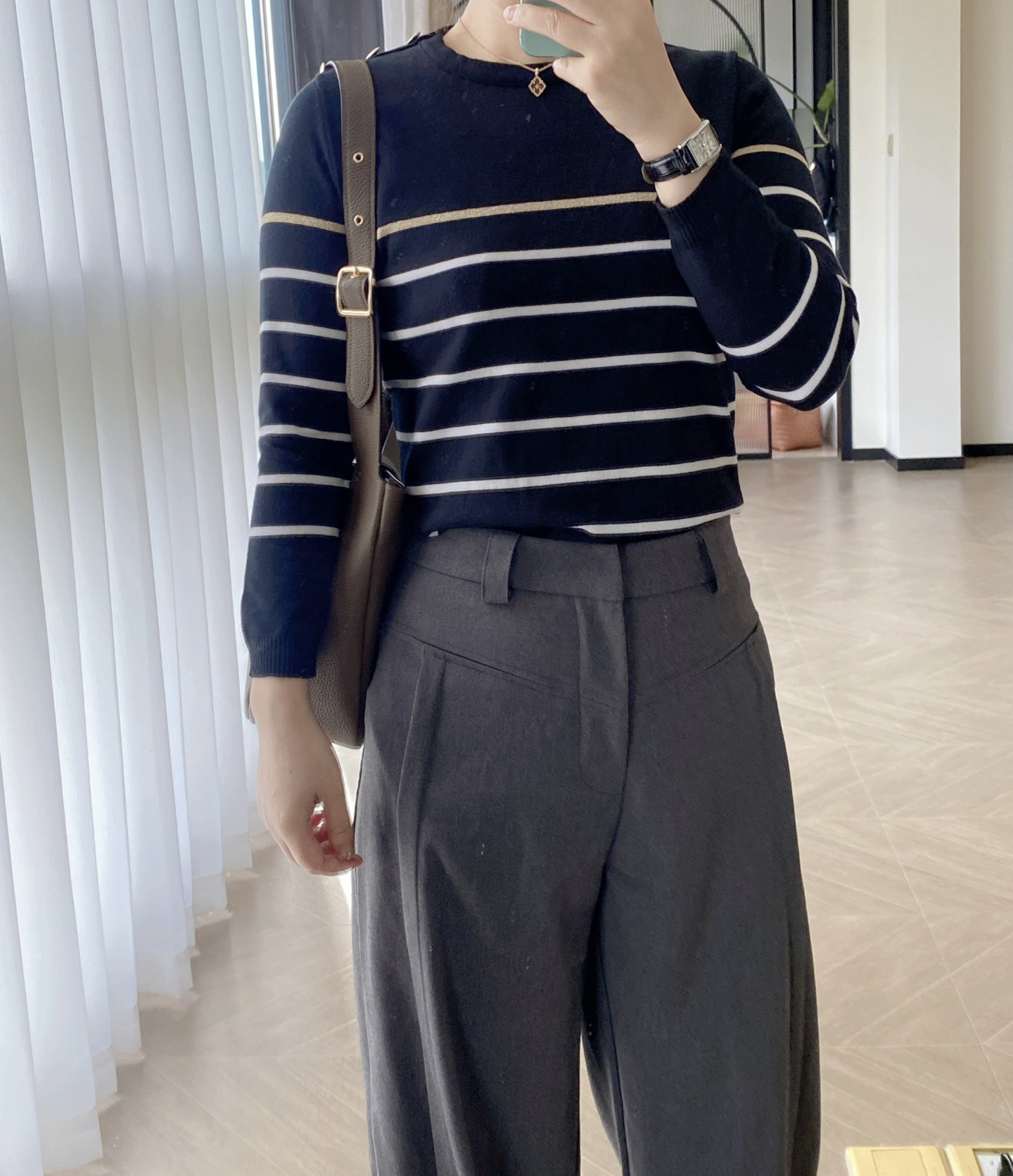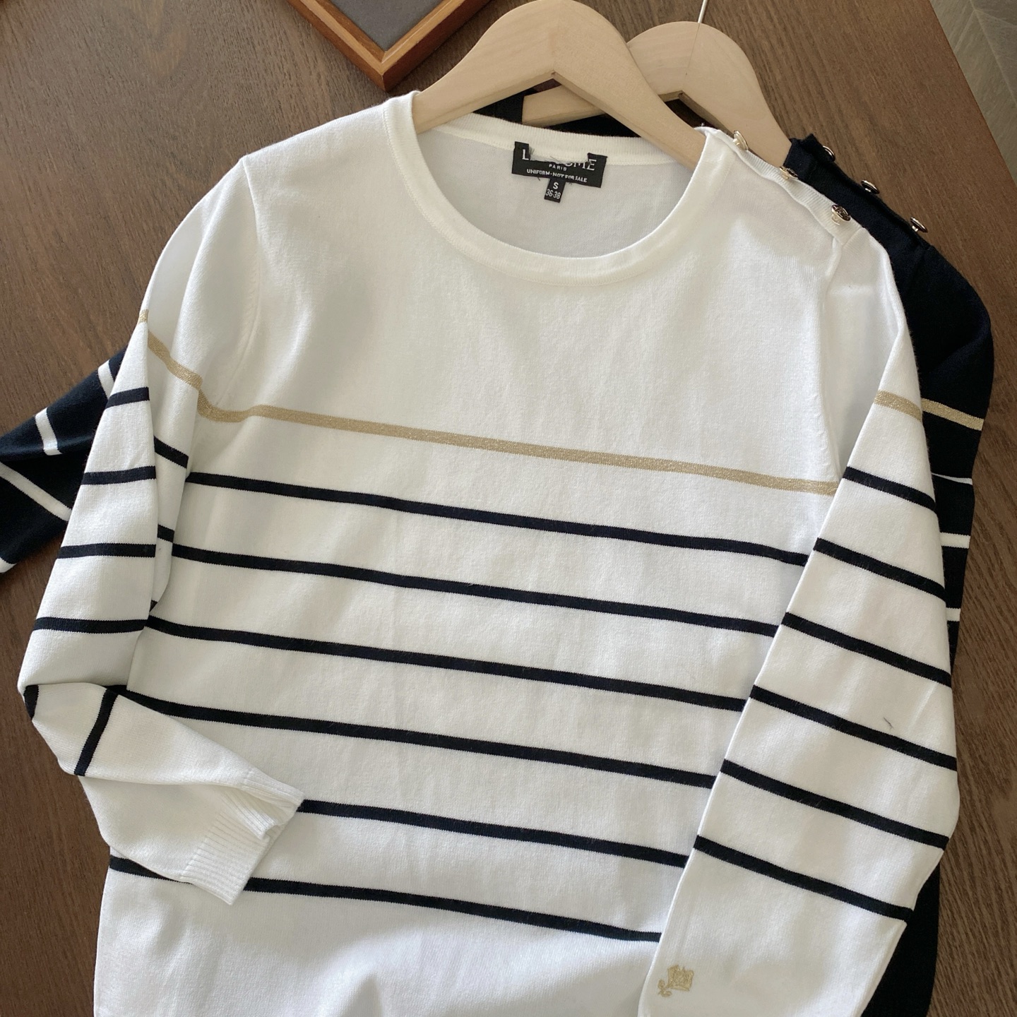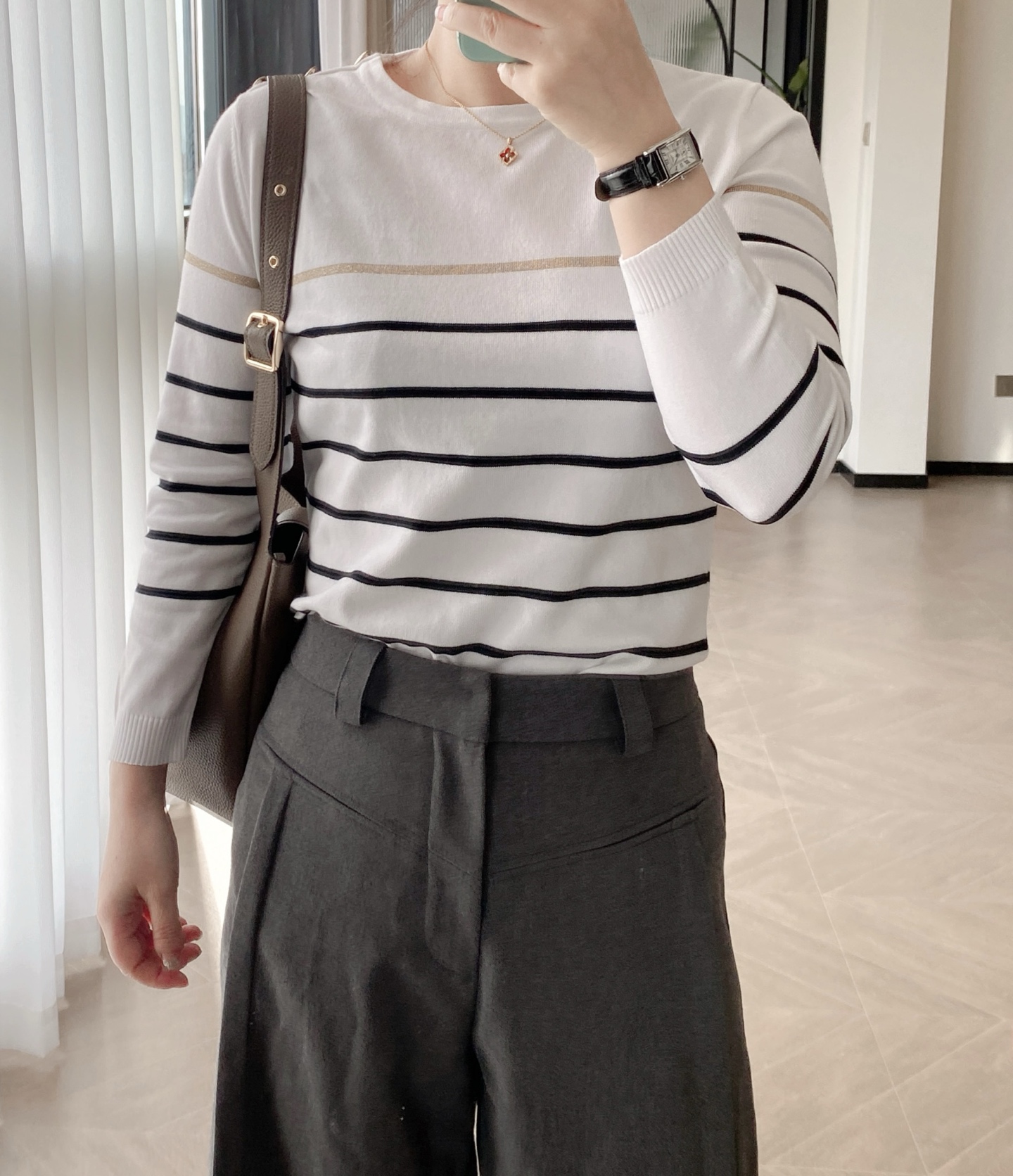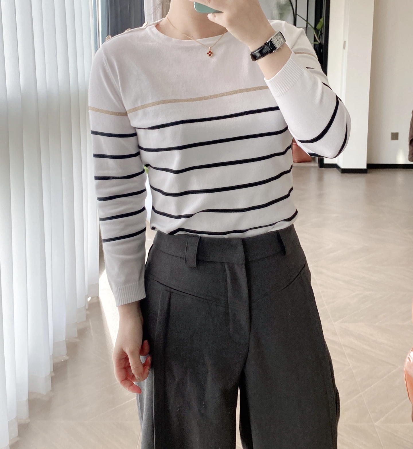 💰59元包邮 【剪标款】出口订单 经典条纹,显瘦百搭圆领九分袖针织衫t恤