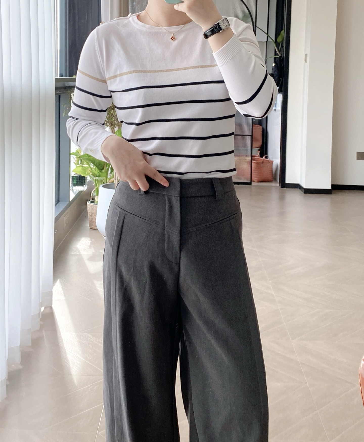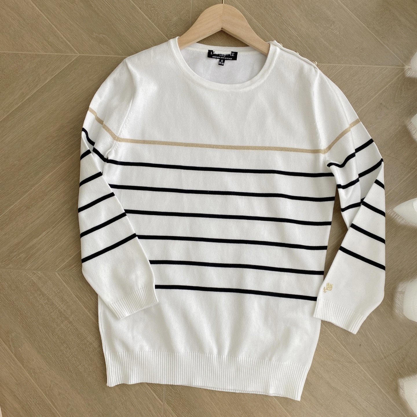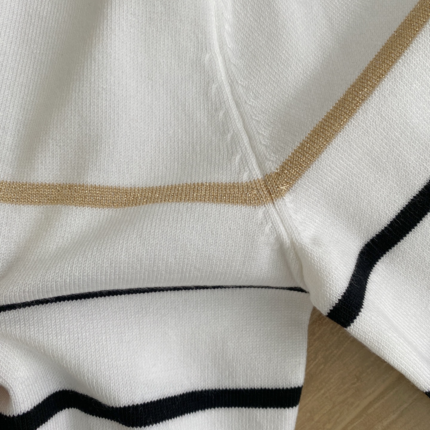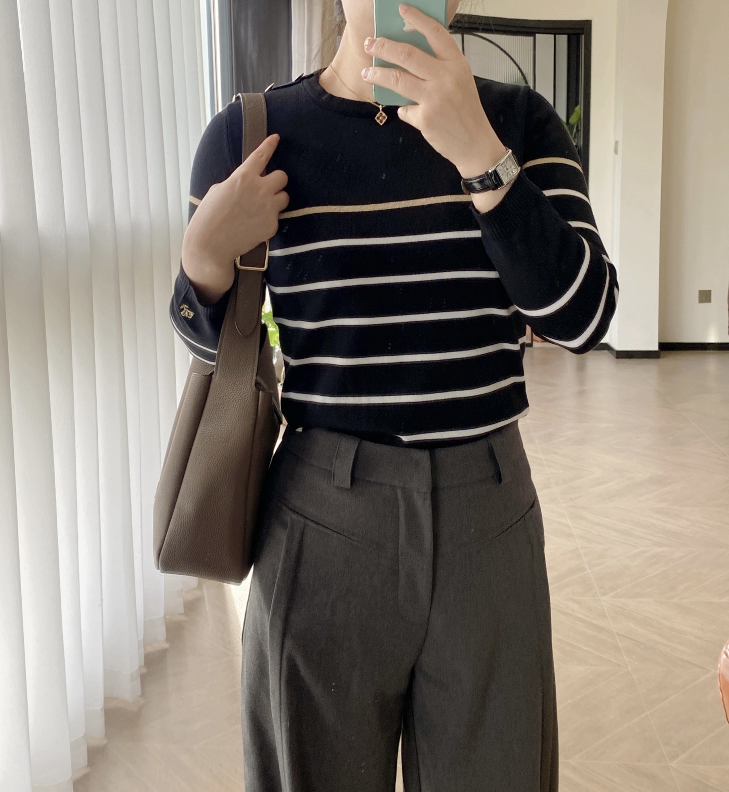 💰59元包邮 【剪标款】出口订单 经典条纹,显瘦百搭圆领九分袖针织衫t恤