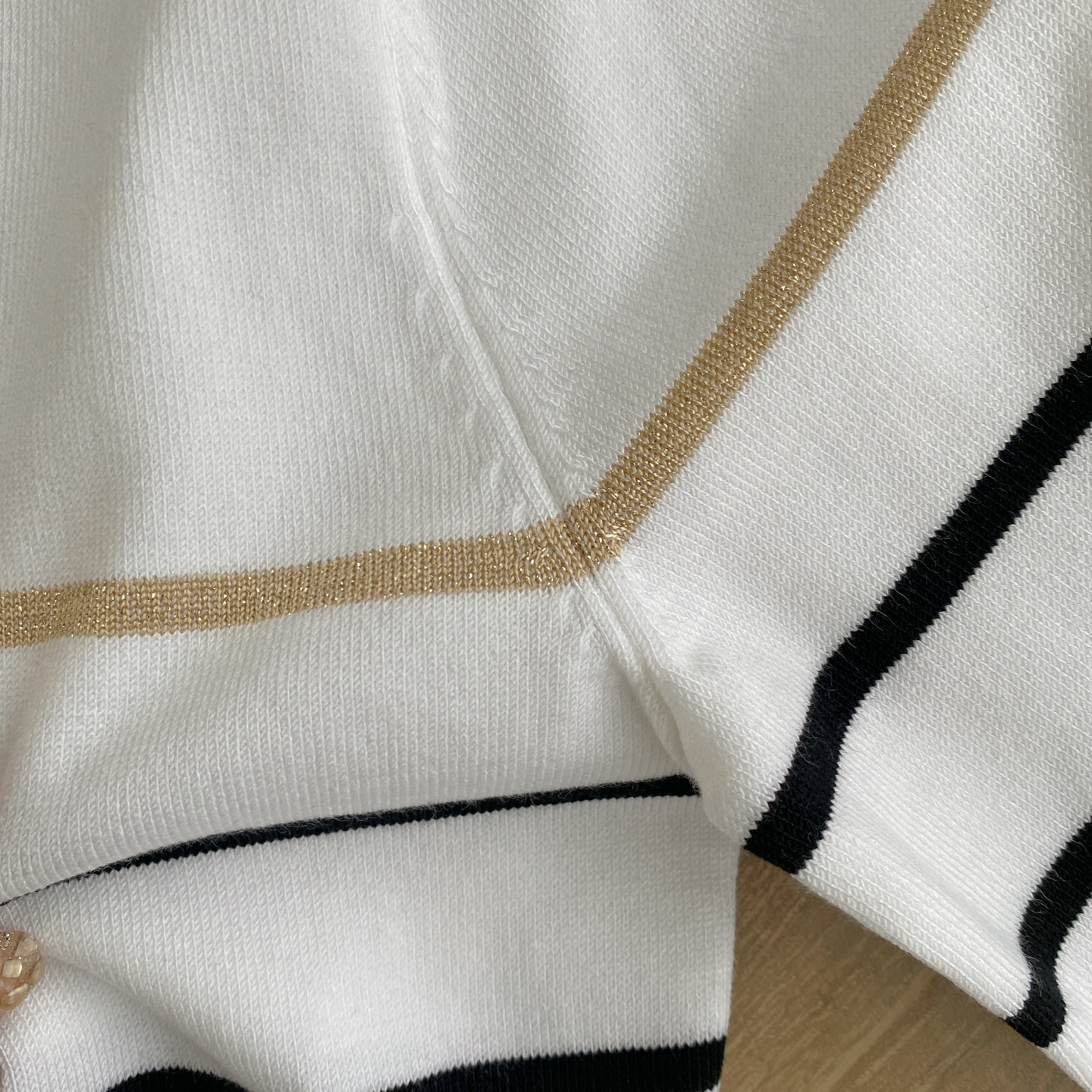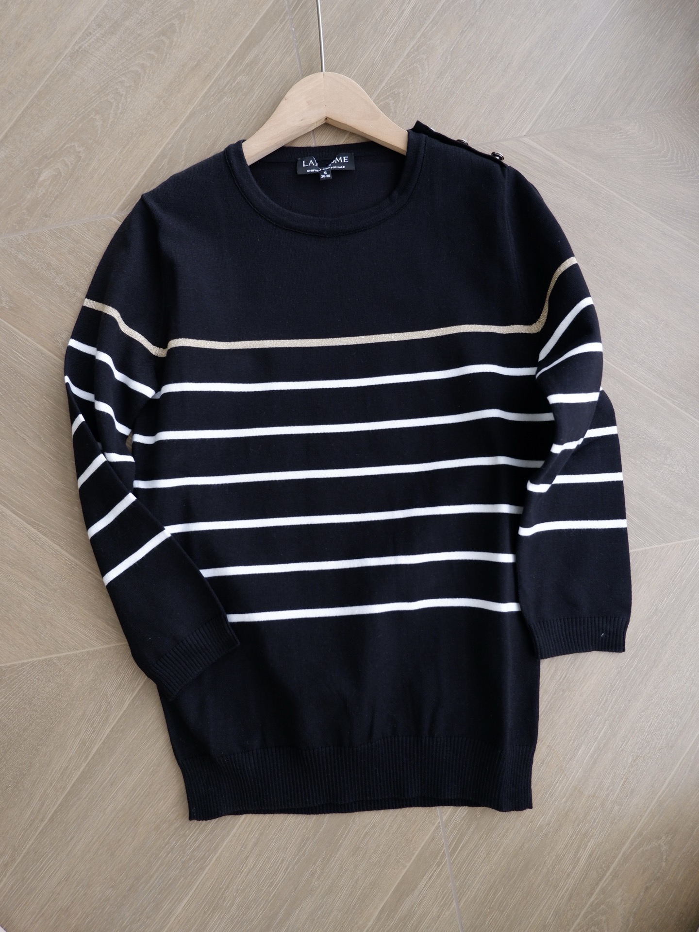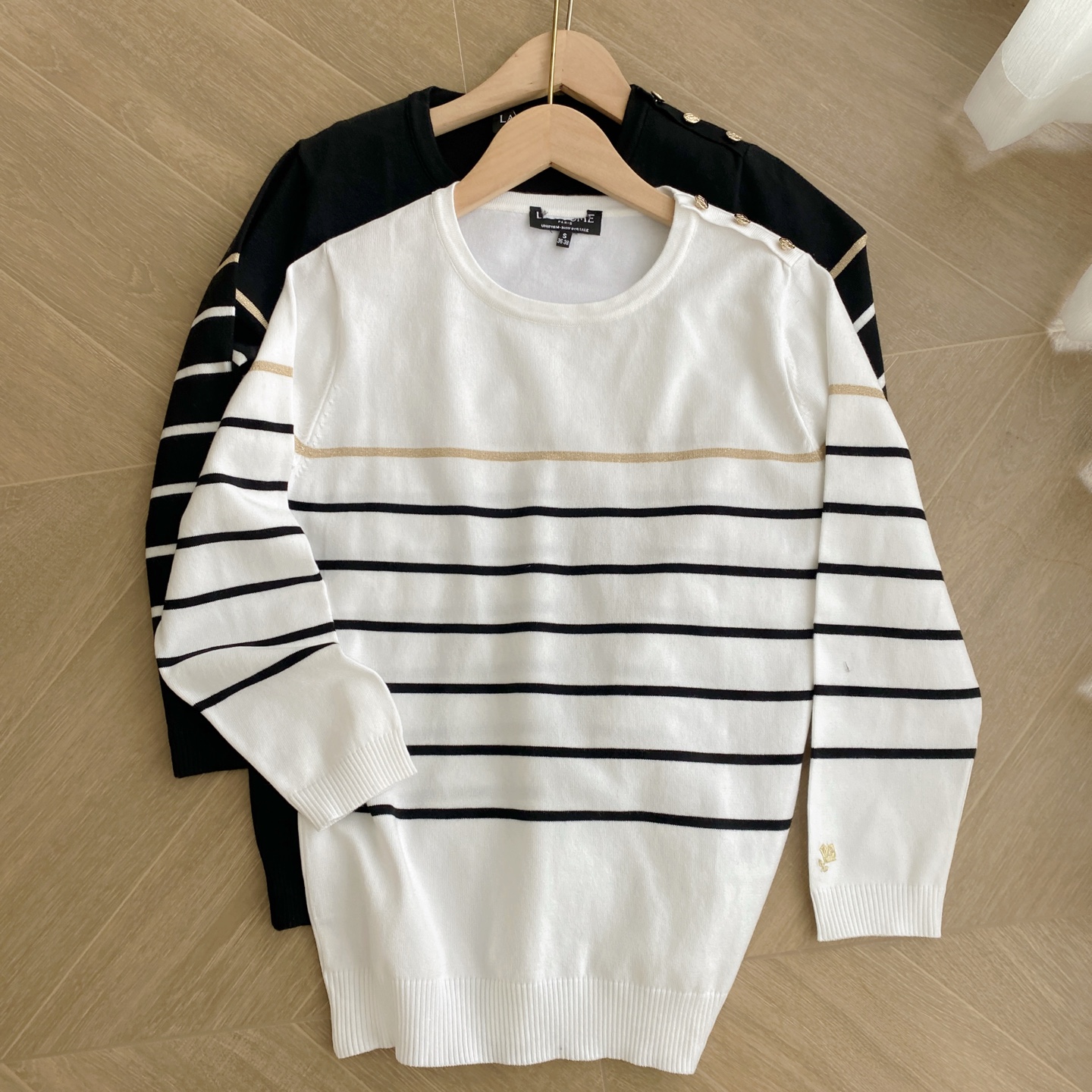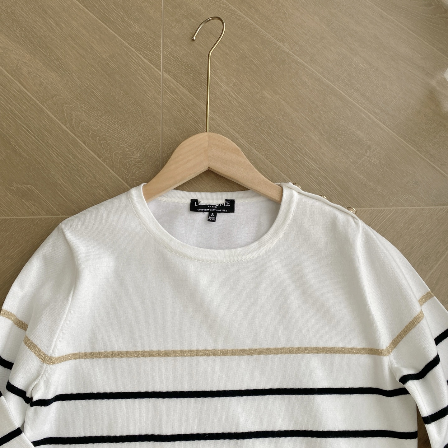 💰59元包邮 【剪标款】出口订单 经典条纹,显瘦百搭圆领九分袖针织衫t恤