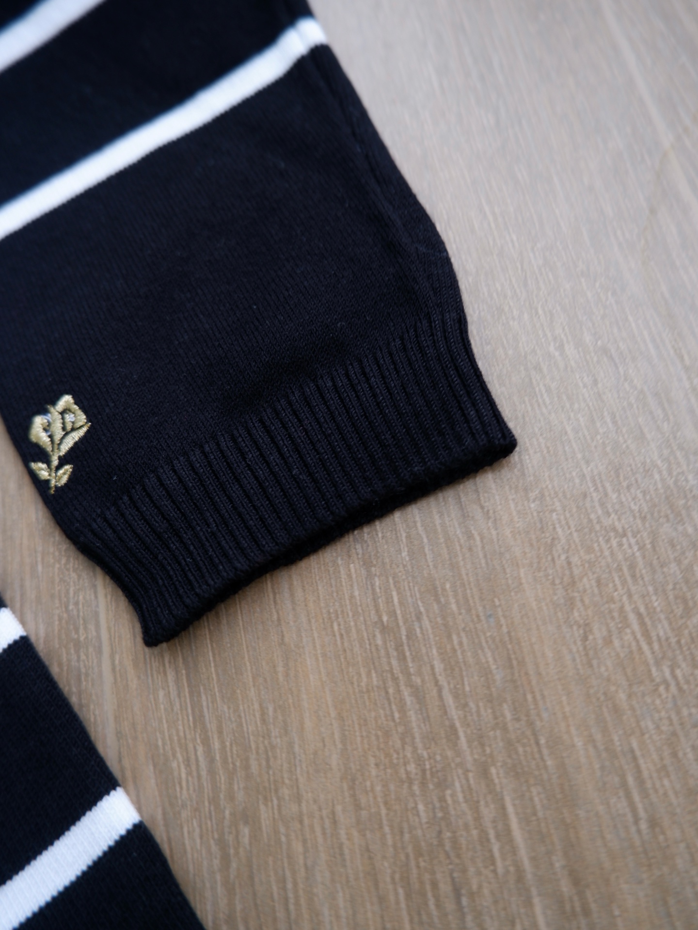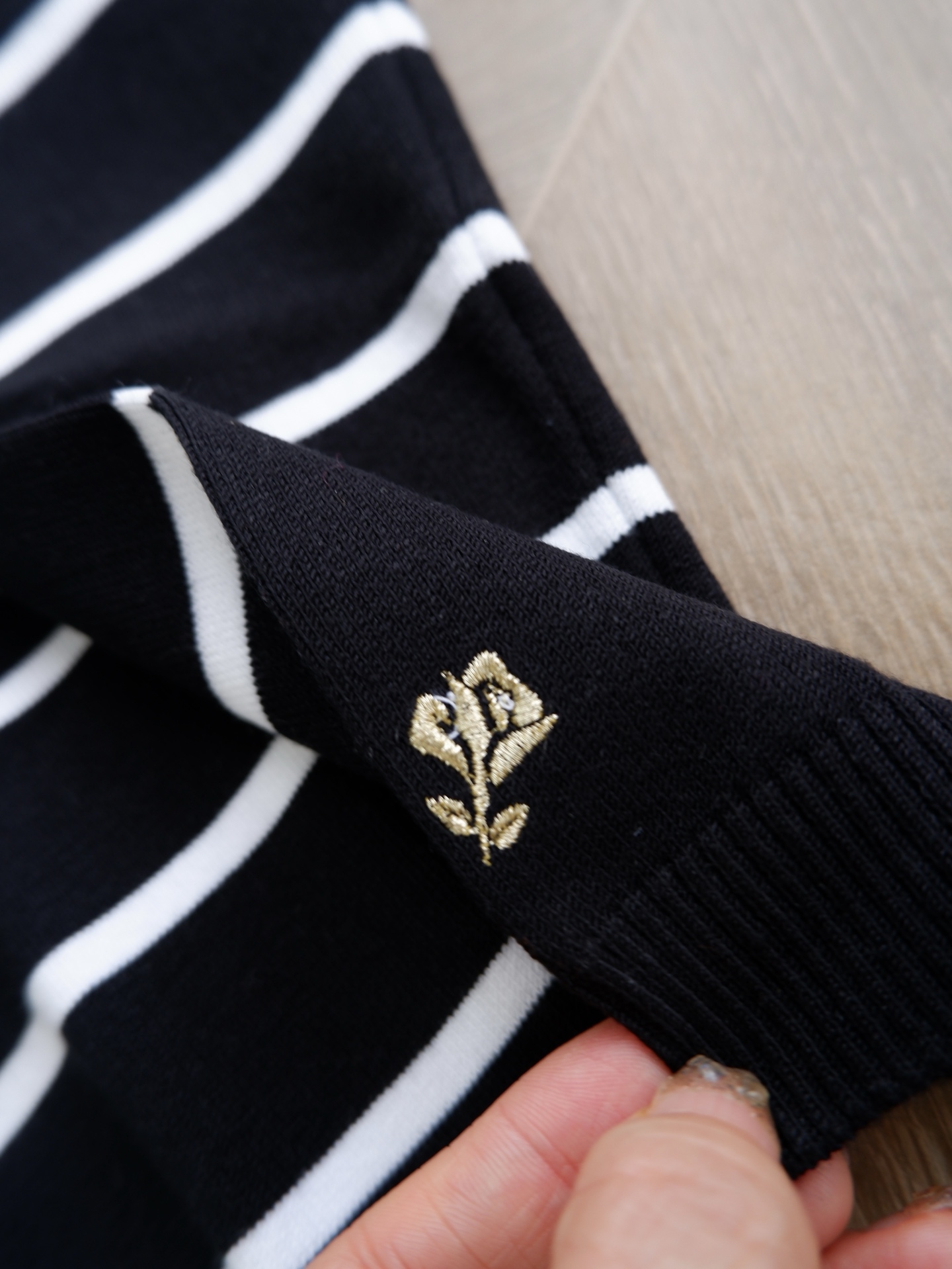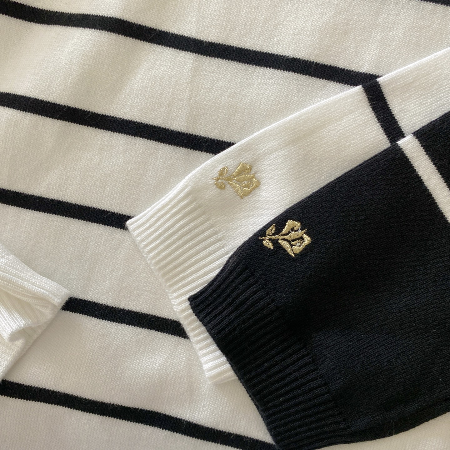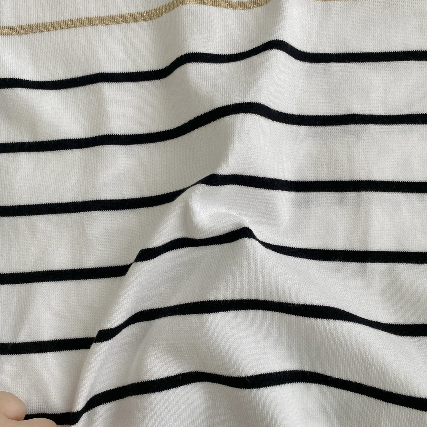 考究小圆领,基础单面组织 平整顺直,搭配永恒的海魂风情条纹