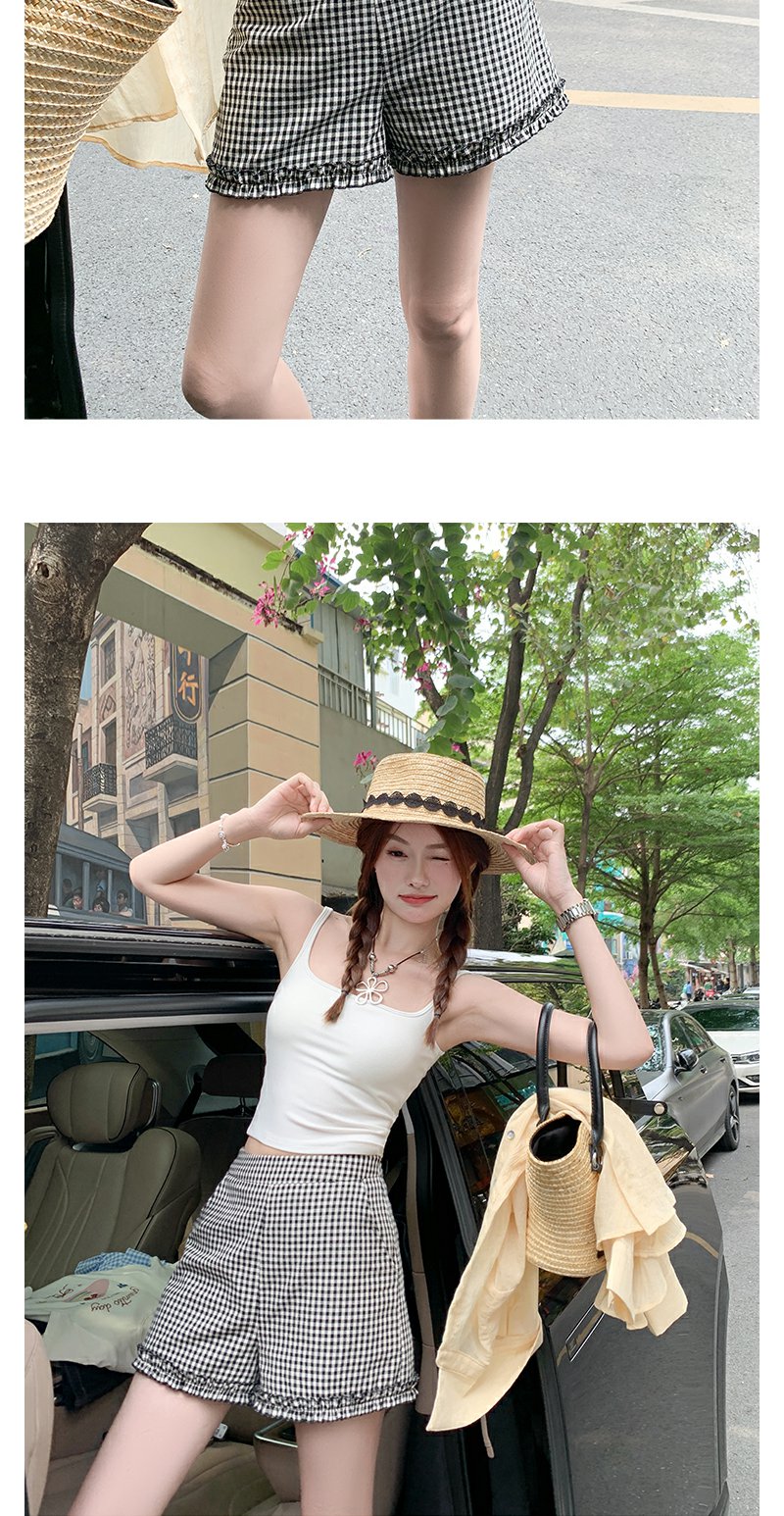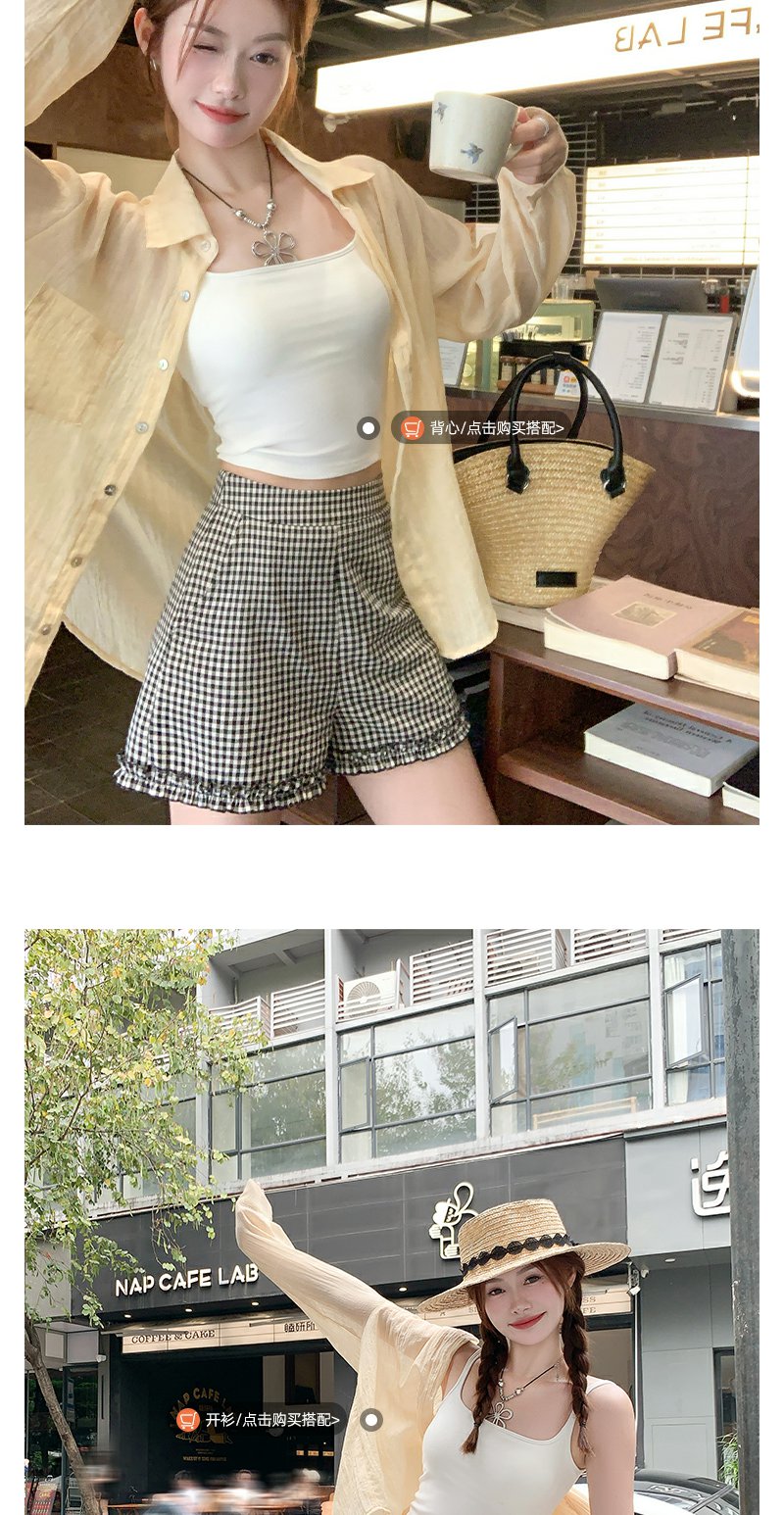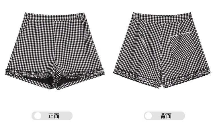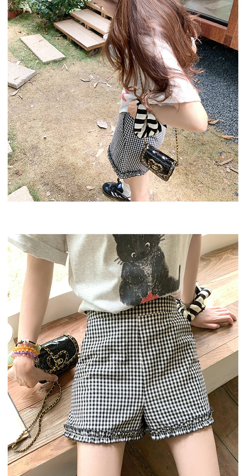 <曾小咸推荐>荷叶边黑白格短裤
