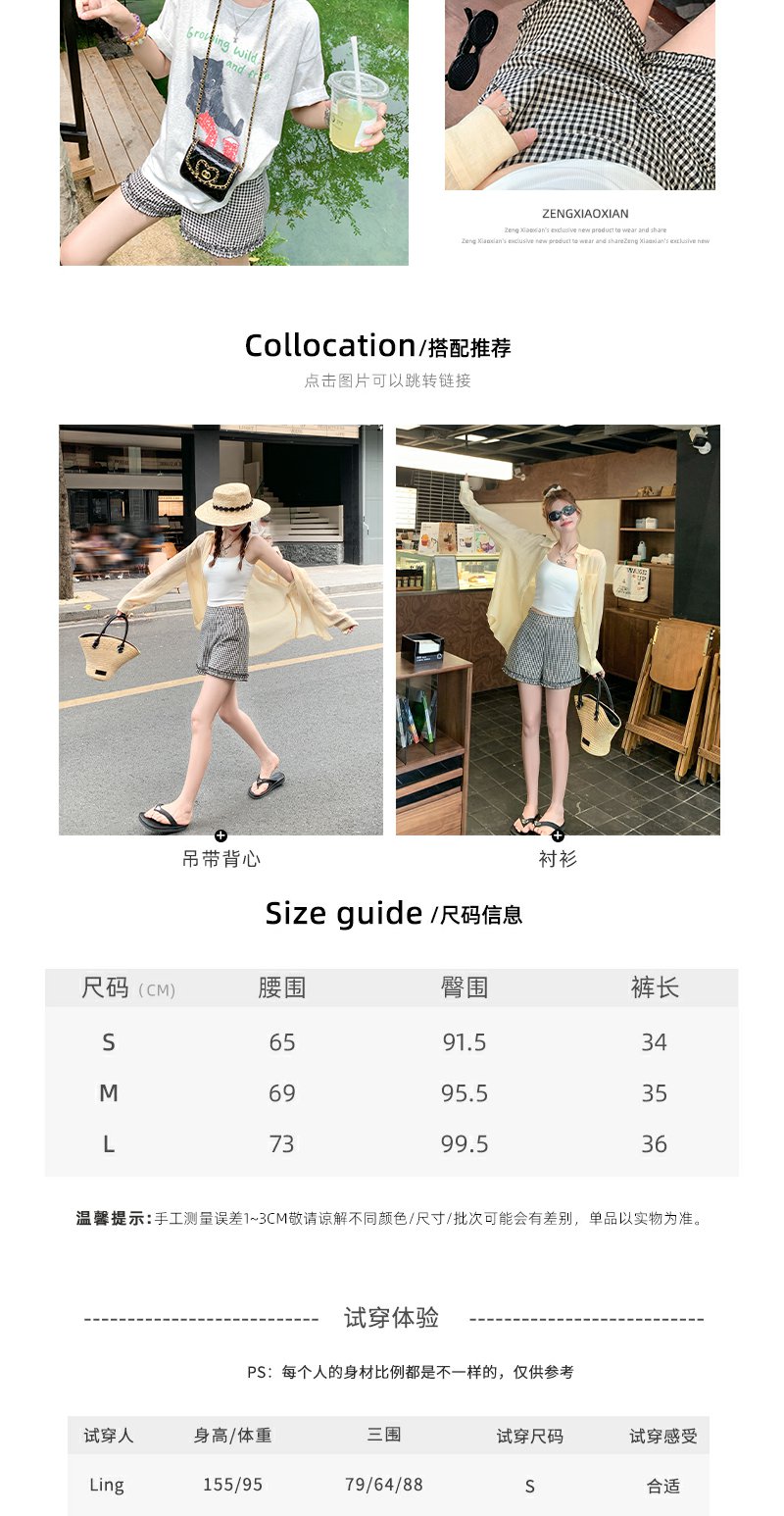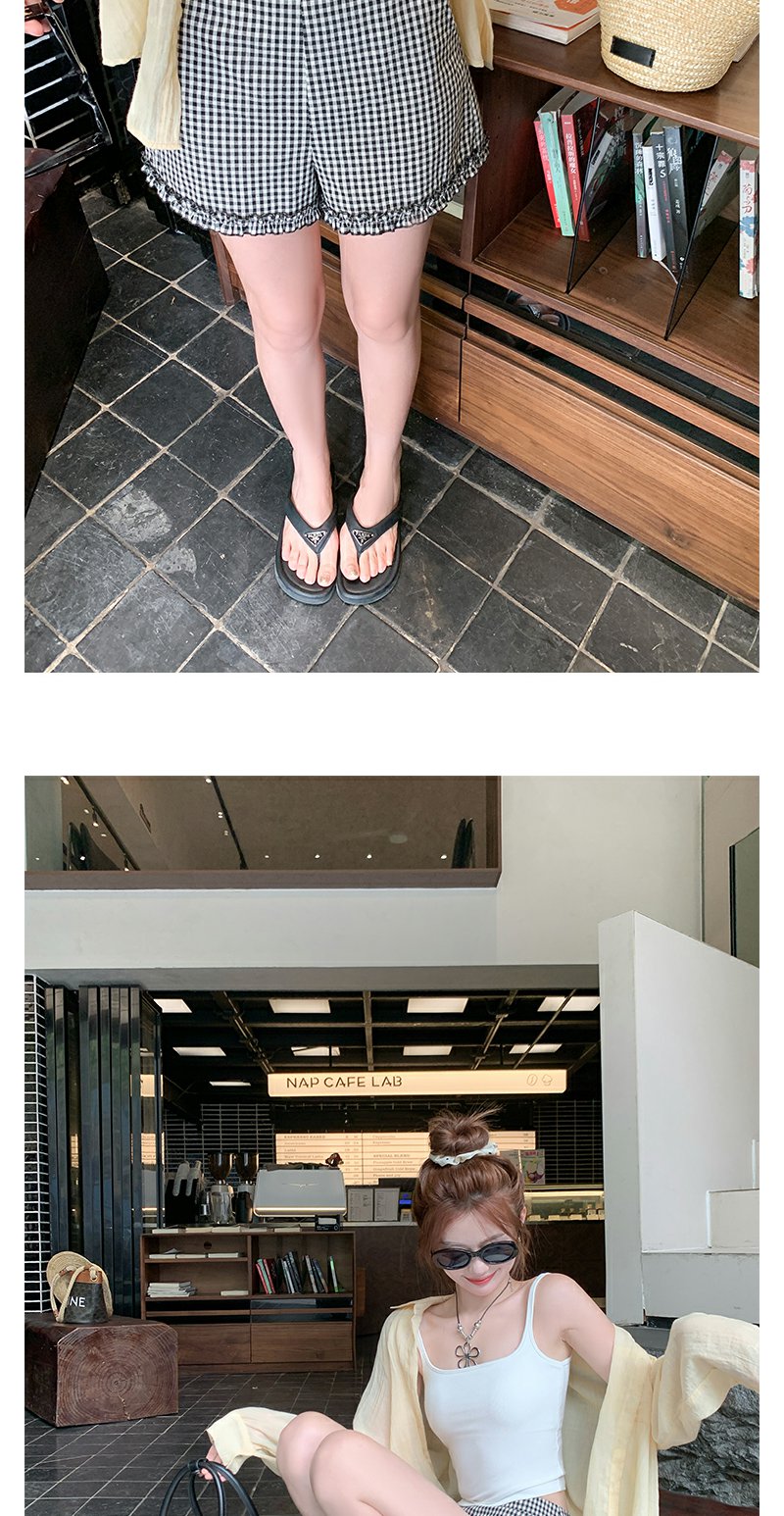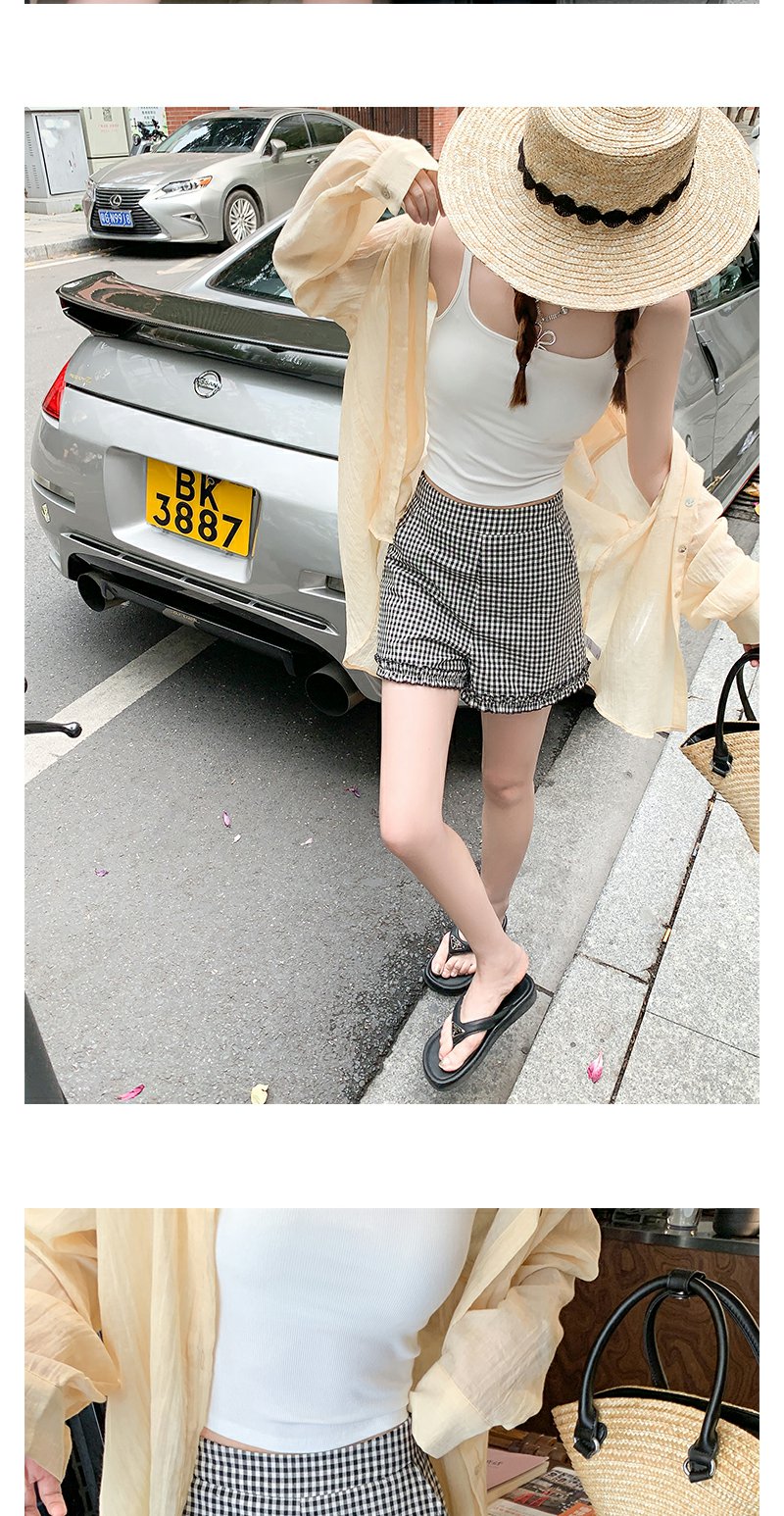 <曾小咸推荐>荷叶边黑白格短裤