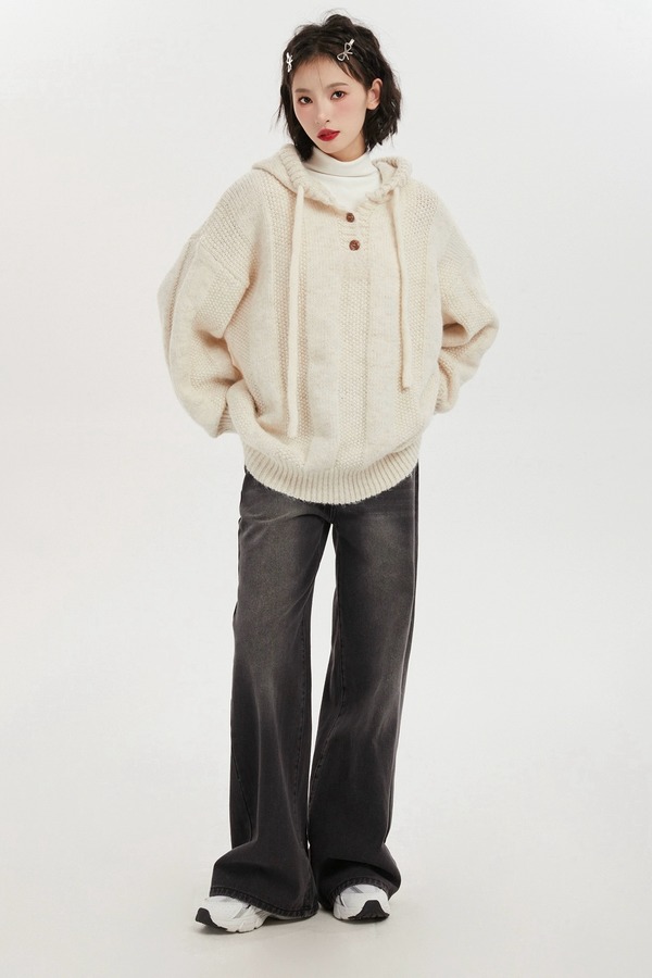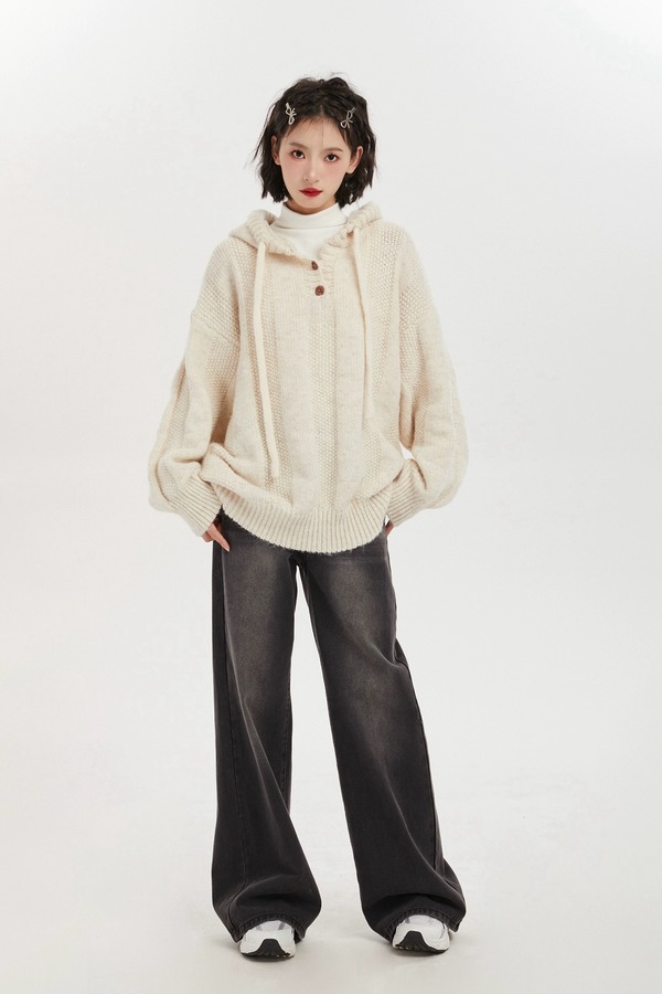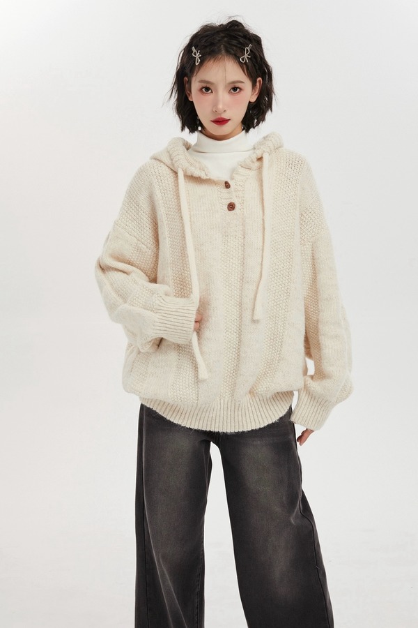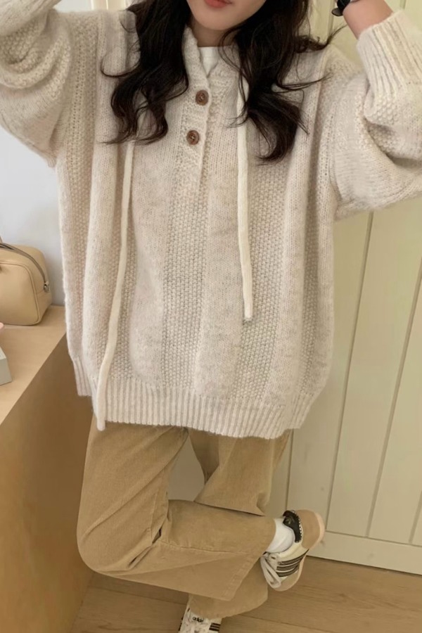 LNNNS 韩式慵懒连帽针织上衣 19622